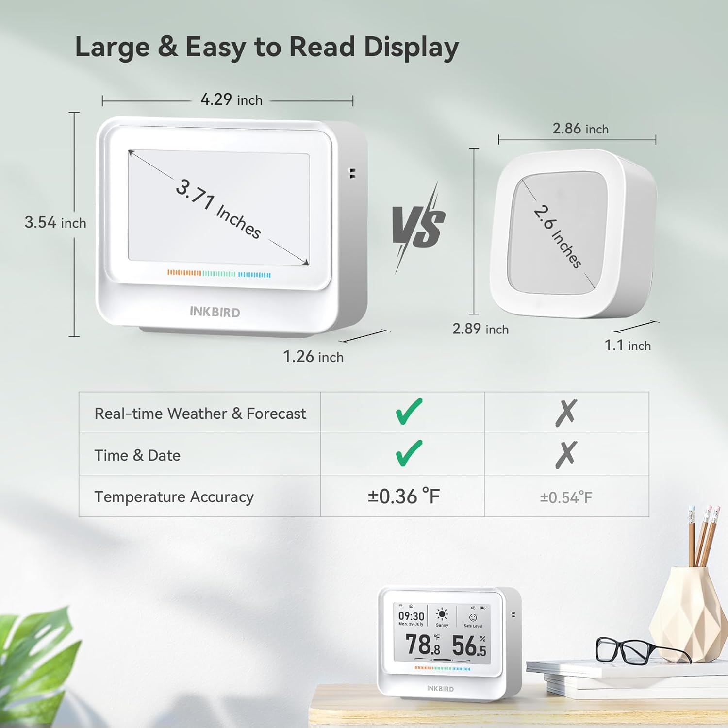 • 【WiFi Remote Monitoring】: Connect this remote temperature monitor to a 2.4GHz WiFi, you can view temp and humidity anytime anywhere on the INKBIRD app. Free data storage and export for up to 2 years.