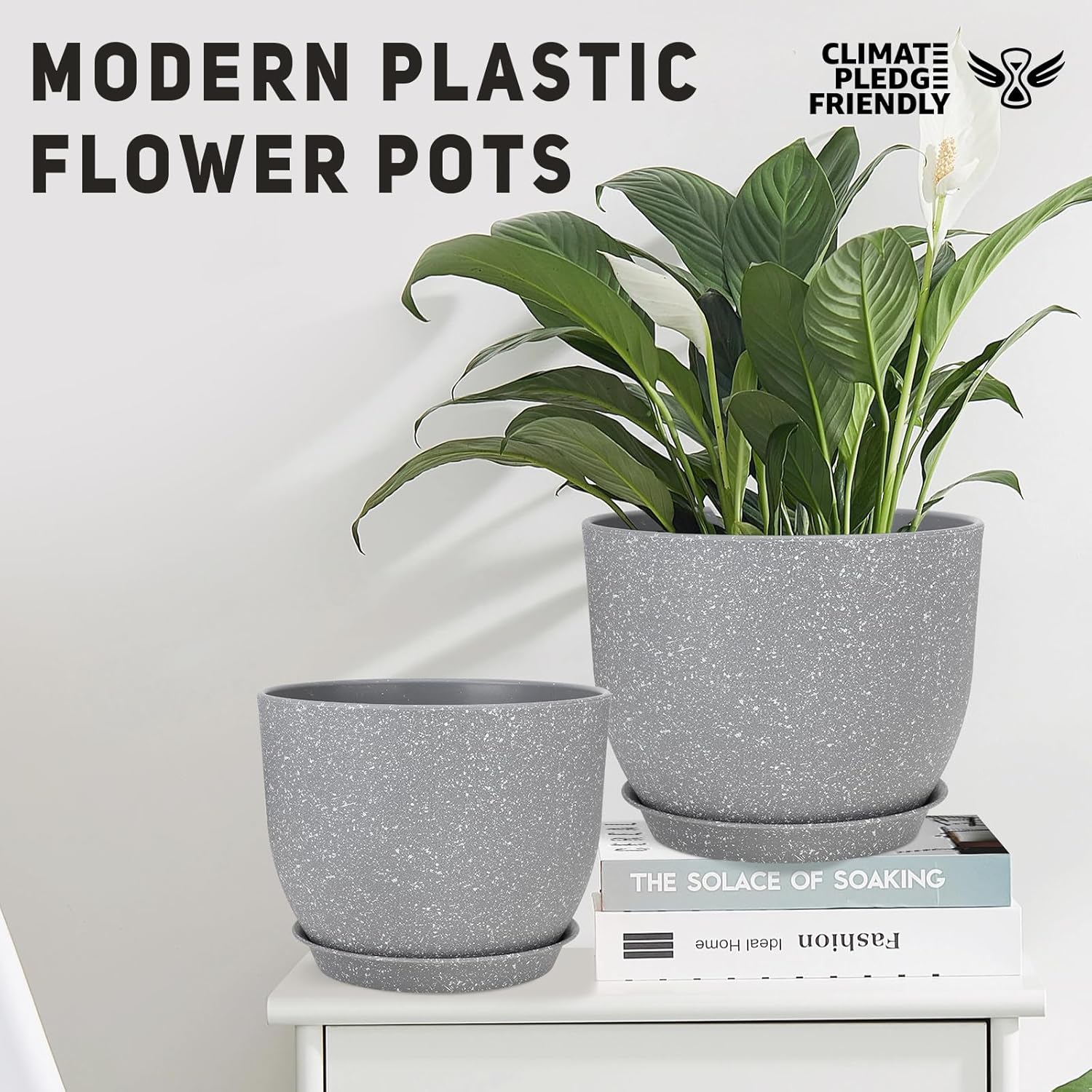Plant Pots 12/10/9 inch Set of 3, Flower Pots with Multi Mesh Drainage Holes, Large Planters for Indoor Outdoor Garden Plants and Flowers. (Gray)