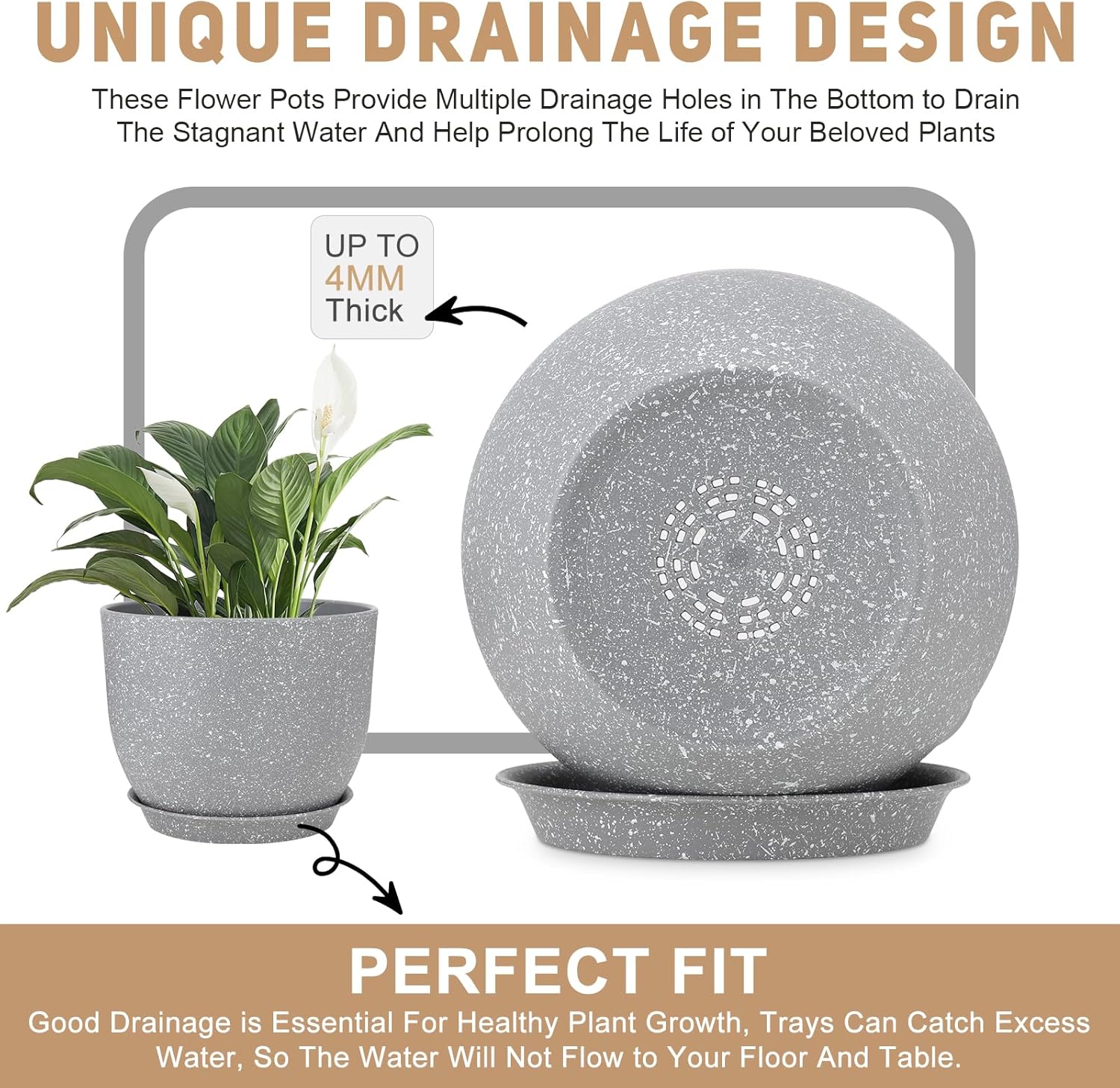 • [ STURDY PLASTIC LIGHTWEIGHT] -Plastic plant pots are made by 6.5mm PP materials. It’s lightweight, durable, sturdy plastic with a matte exterior finish for a clean modern look.