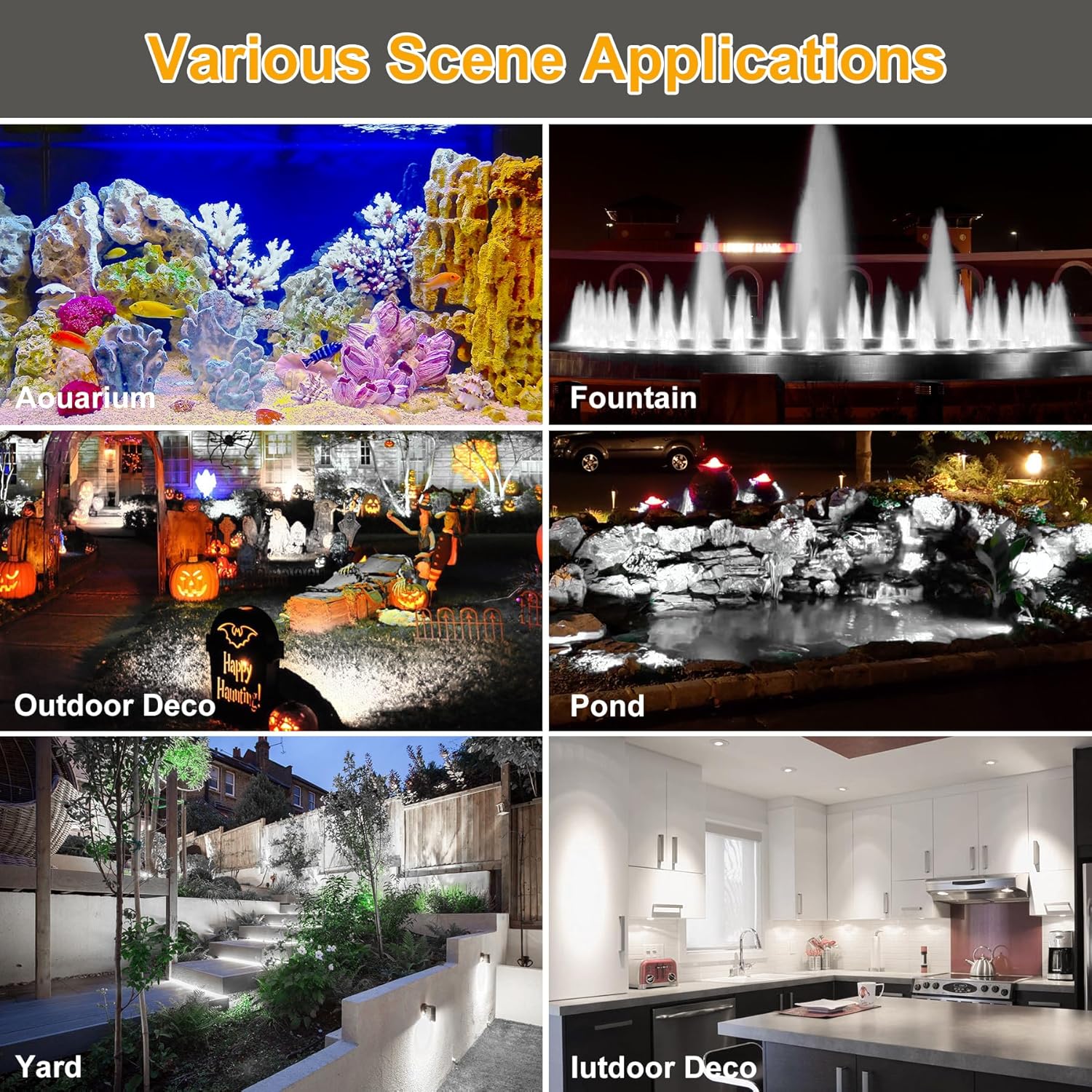 • IP68 Waterproof and Resistant to Corrosion: The led submersible lights is produced with professional dust-proof and IP68 waterproof technology, which is durable