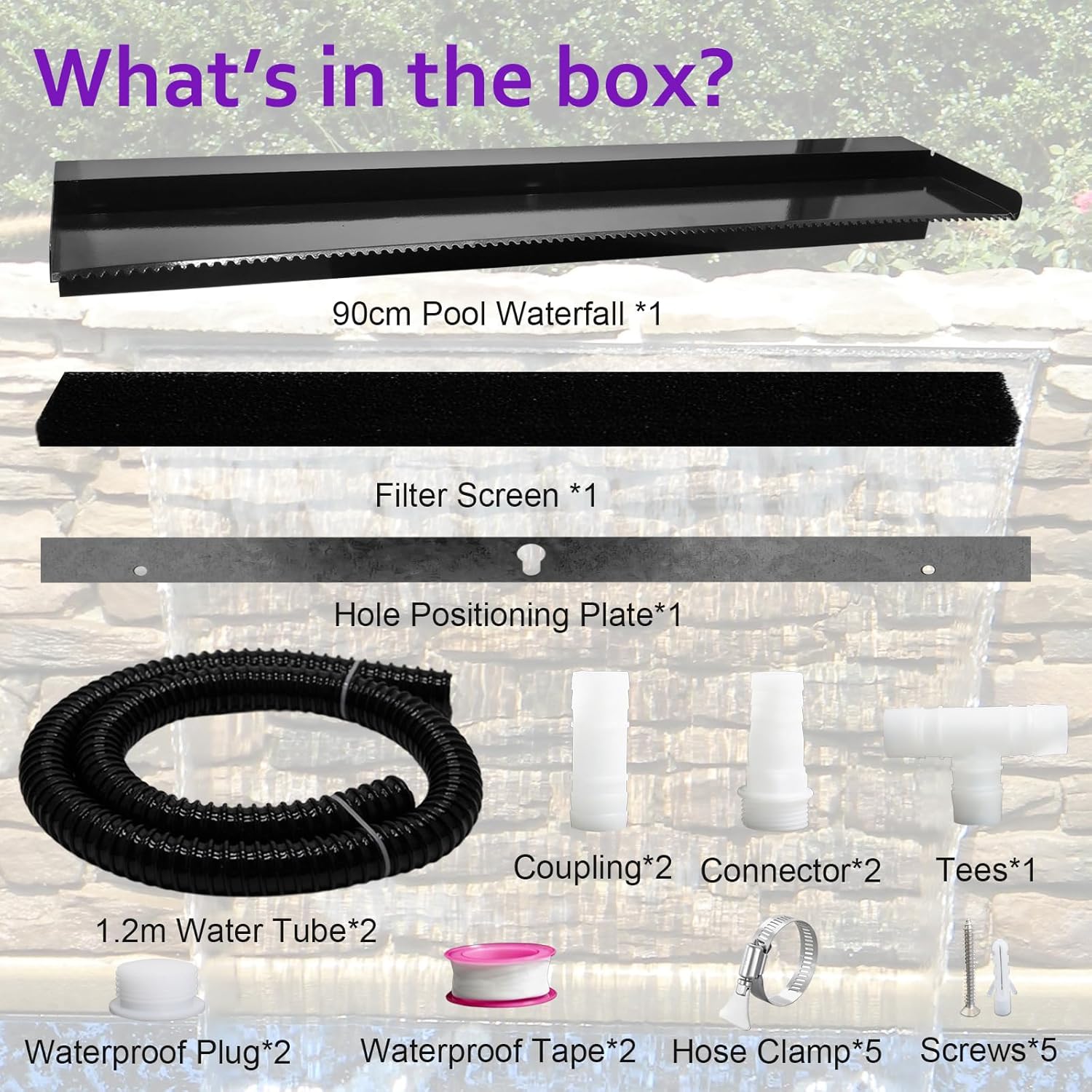 • ⏩Easy to Install Waterfall Kit⏪ Pamopamo waterfall kit is user-friendly and easy to set up. It integrates seamlessly into your pool or pond, adding a beautiful water feature without the need for complex installations.
