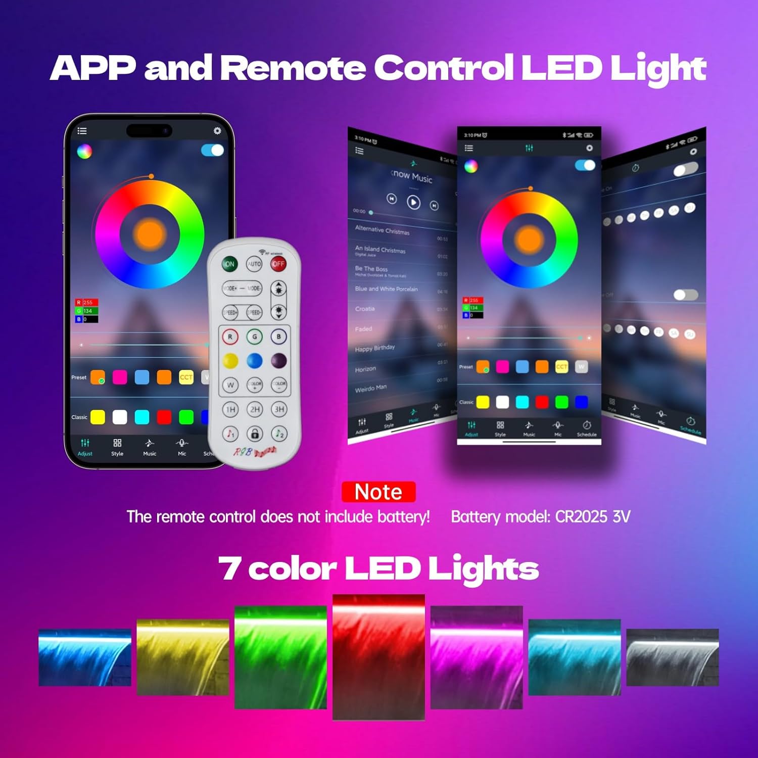 • ⏩Decoration Pool Waterfall⏪ Pamopamo waterfall spillway makes your garden swimming pool and koi pond elegant, fashionable and beautiful. The color change of LED lights and the gentle sound of water running make your patio more special at night.