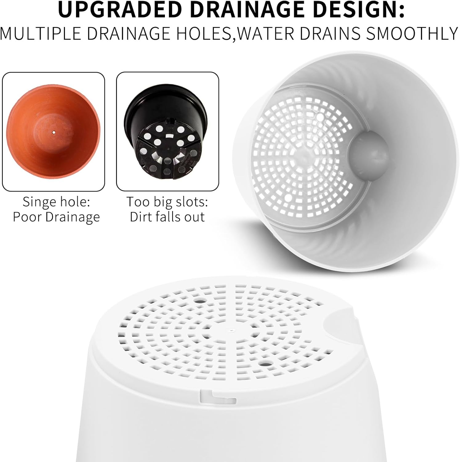 • 【Modern Simple Design】Pure white plant pot and matte finishing exterior, bringing out a modern minimalistic styled. the round planter pots are perfect for all medium to large-sized indoor house plants and herb spice gardens.