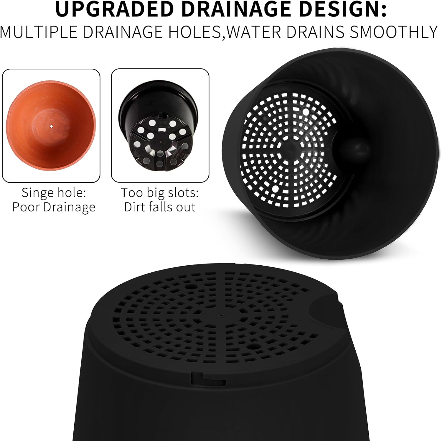 • 【Modern Simple Design】Pure black plant pot and matte finishing exterior, bringing out a modern minimalistic styled. the round planter pots are perfect for all medium to large-sized indoor house plants and herb spice gardens.