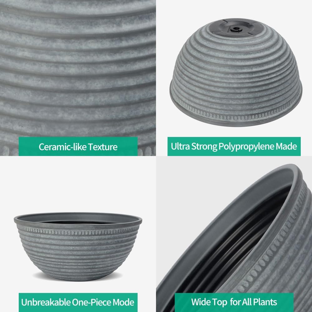 2 Pack 10 Inch Plant Pots,Durable Decorative Flower Pots Planters with Drainage Hole for Indoor and Outdoor Plants,Flowers,Succulents, Gray
