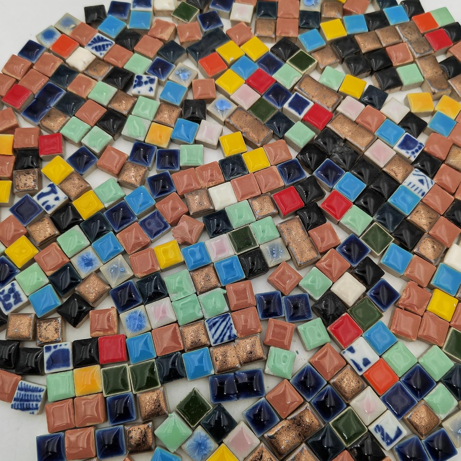 500g/1.1lb Random Color Irregular Ceramics Mosaic Tiles,DIY Making Creative Ceramic Mosaic Tiles for DIY Craft Plates Flowerpots Vases Cups Mosaic Making Supplies (Mix Square)