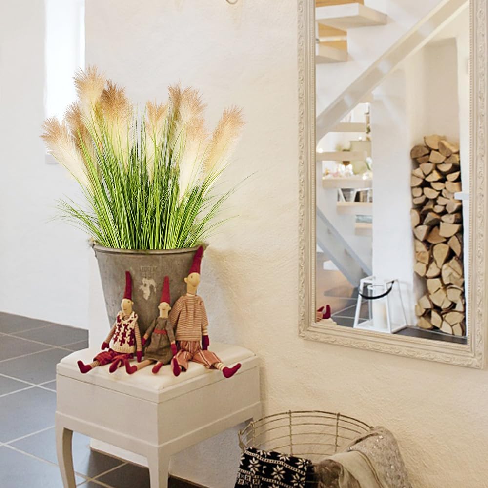 • Tall Fake Grass for Indoor Outdoor: Tall Fake grass is multi-purpose for indoor or outdoor decoration, Home Decor,floors,garden, Pathway ,dining room,bedroom,meeting room,hotel,store,anywhere you want,The fake plants especially suitable for all kinds of tall vases , large planter ceramic vase, floor vase,front porch planter,window box