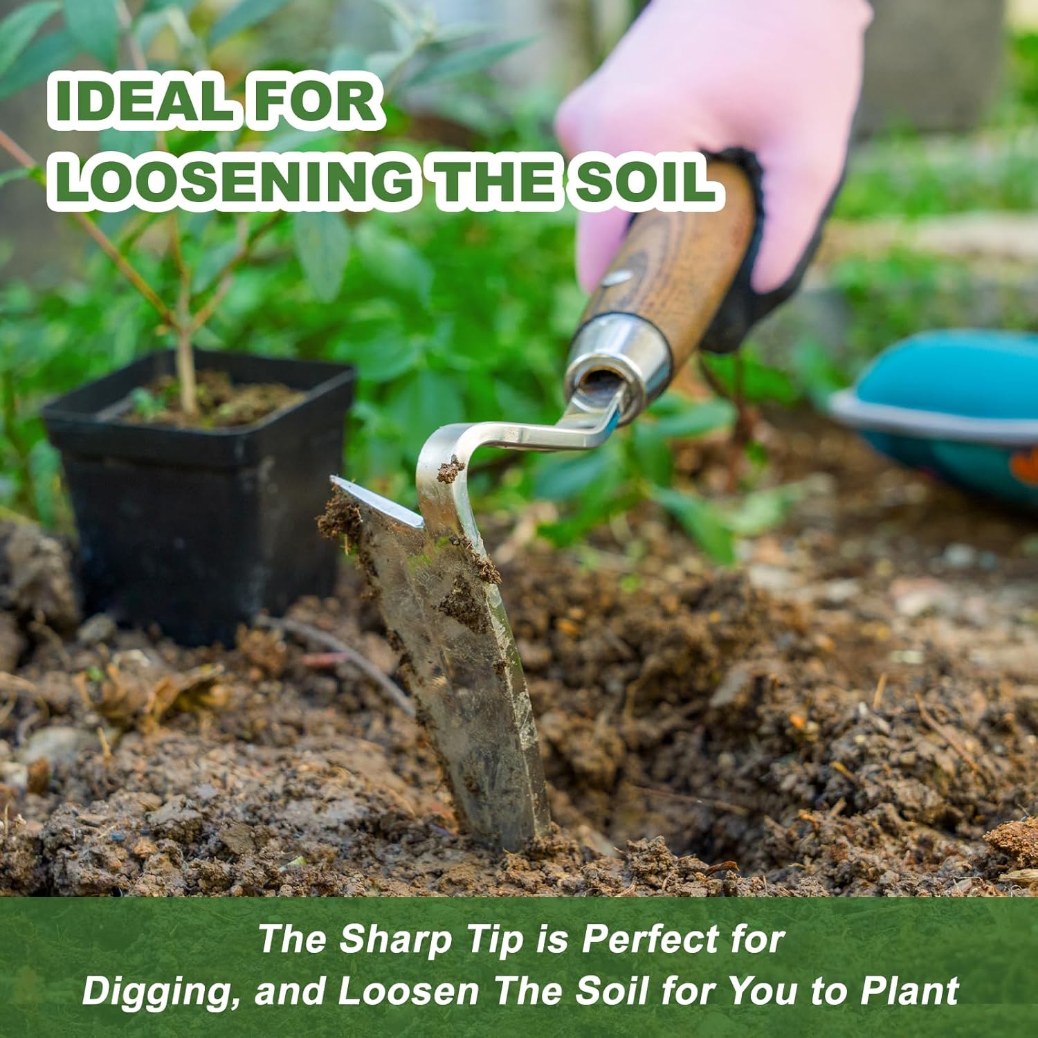 • 【Loosen The Soil Effortlessly】The japanese weeder with a sharp point tip makes it easy to dig and is used for breaking up the soil, mixing in compost to small areas, helping loosen the soil around weeds, and even digging when the dirt is compacted mess.