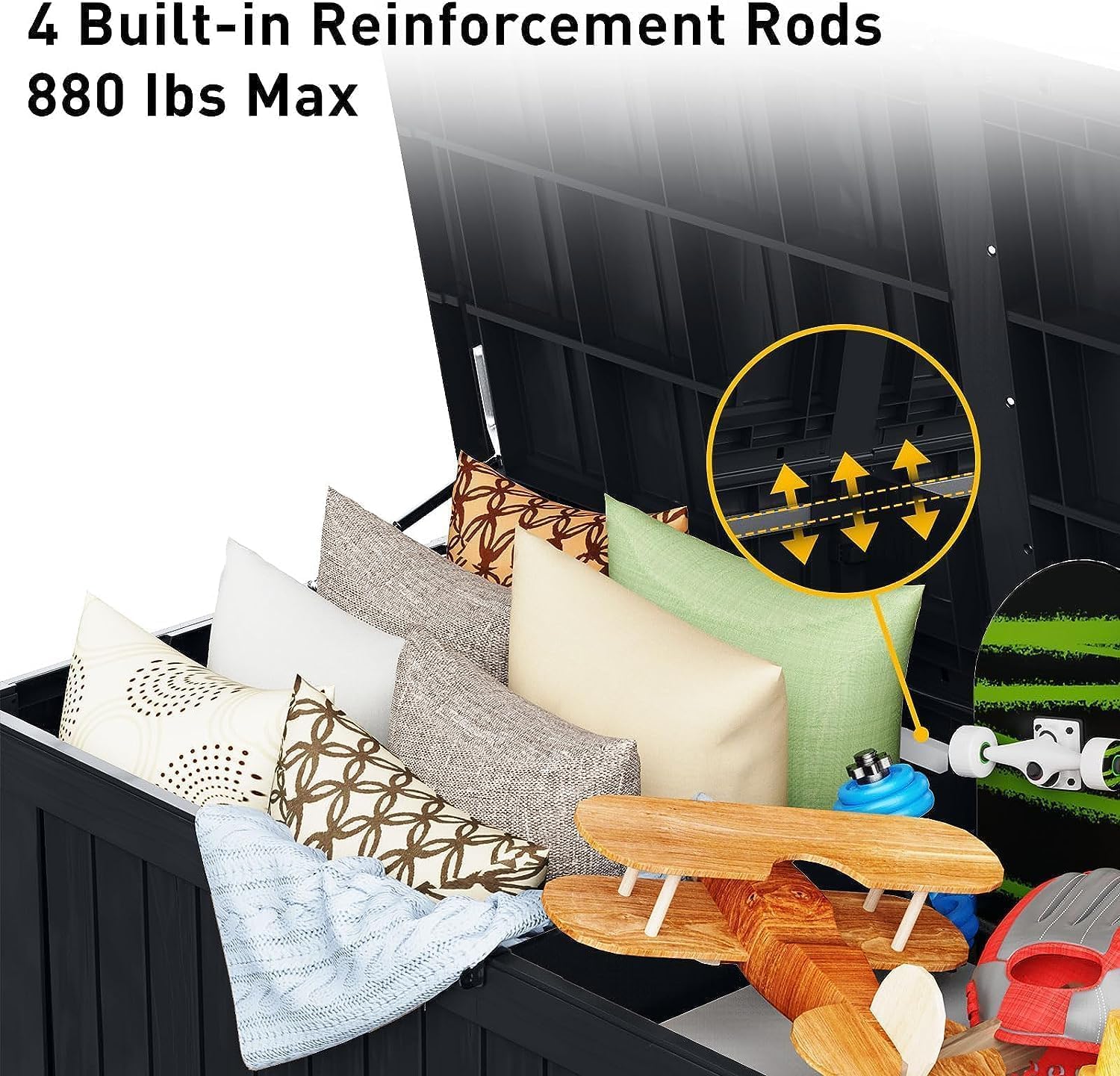 • ROBUST & STABLE CONSTRUCTION - Featuring an internally reinforced design, this deck box delivers exceptional weight-bearing capacity and durability. The thicker panels and precise assembly ensure enhanced stability, helping maintain its shape over time.