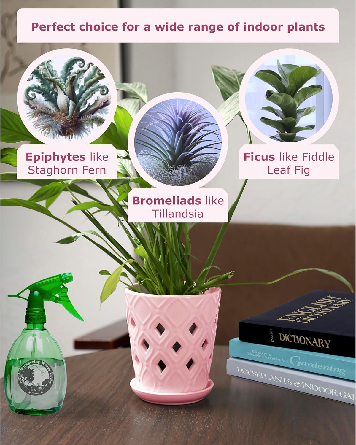 Whispering Winds Ceramic 5 x 6 Inch Orchid Pot with Holes & Saucer for Aeration and Drainage - Decorative Orchid Pots for Repotting, Prevent Over Watering & Root Rot (Cavern Pink)