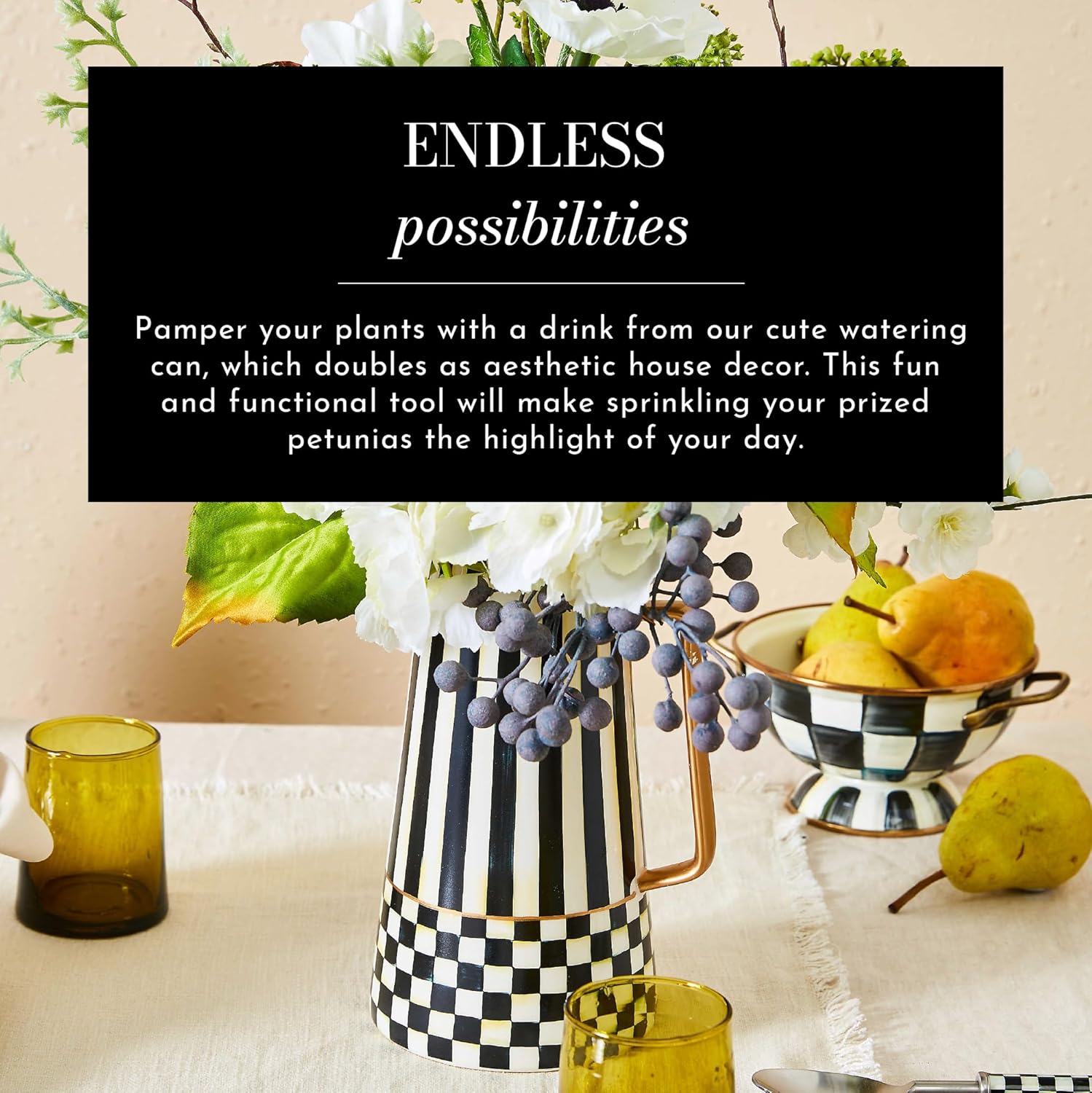 • ELEGANT OUTDOOR GARDENING TOOL: Our Spectator rustic watering can features black-and-white color-dragged checks with a long pour spout and handle. The pattern creates classic charm to complement a variety of decor.