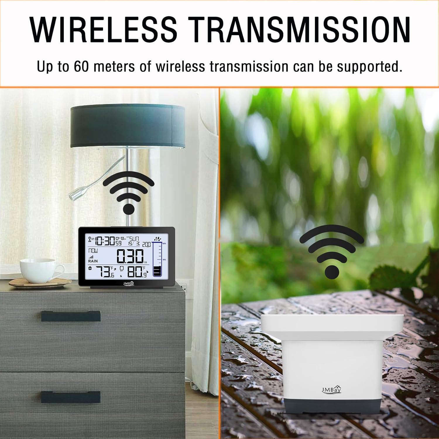 • Multi Function Rain Gauge weather station---In addition to rainfall monitoring, this digital rain gauge can also provide real-time indoor and outdoor temperatures, WWVB Radio control time function. What’s more, dual alarm clock with snooze function and calendar is practical in your usual life. Functional and stylish, JMBay rain gauge weather station is the perfect decoration for your living room, bedroom, office, greenhouse, tent, and more.