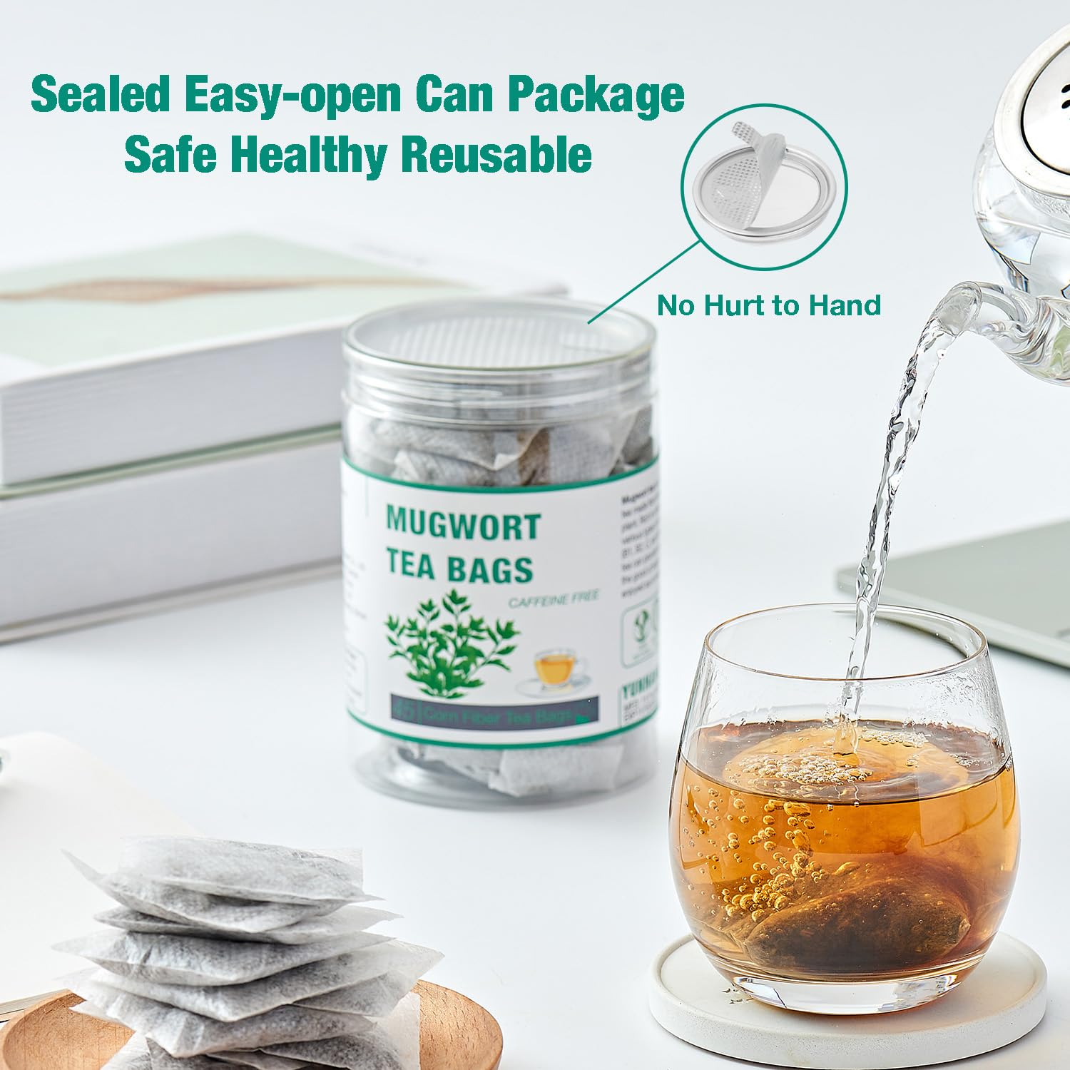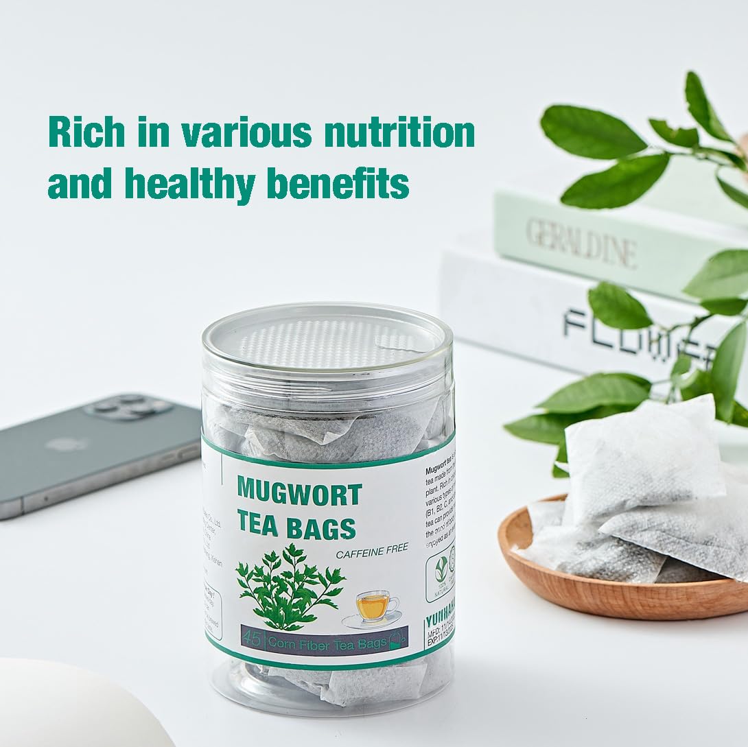 45 Mugwort Tea Bags | Natural Dried Chinese Mugwort Herb Tea | Artemisia Wormwood Tea | Caffeine Free, Help Sleep, Lucid Dreaming, Relax, Digestion