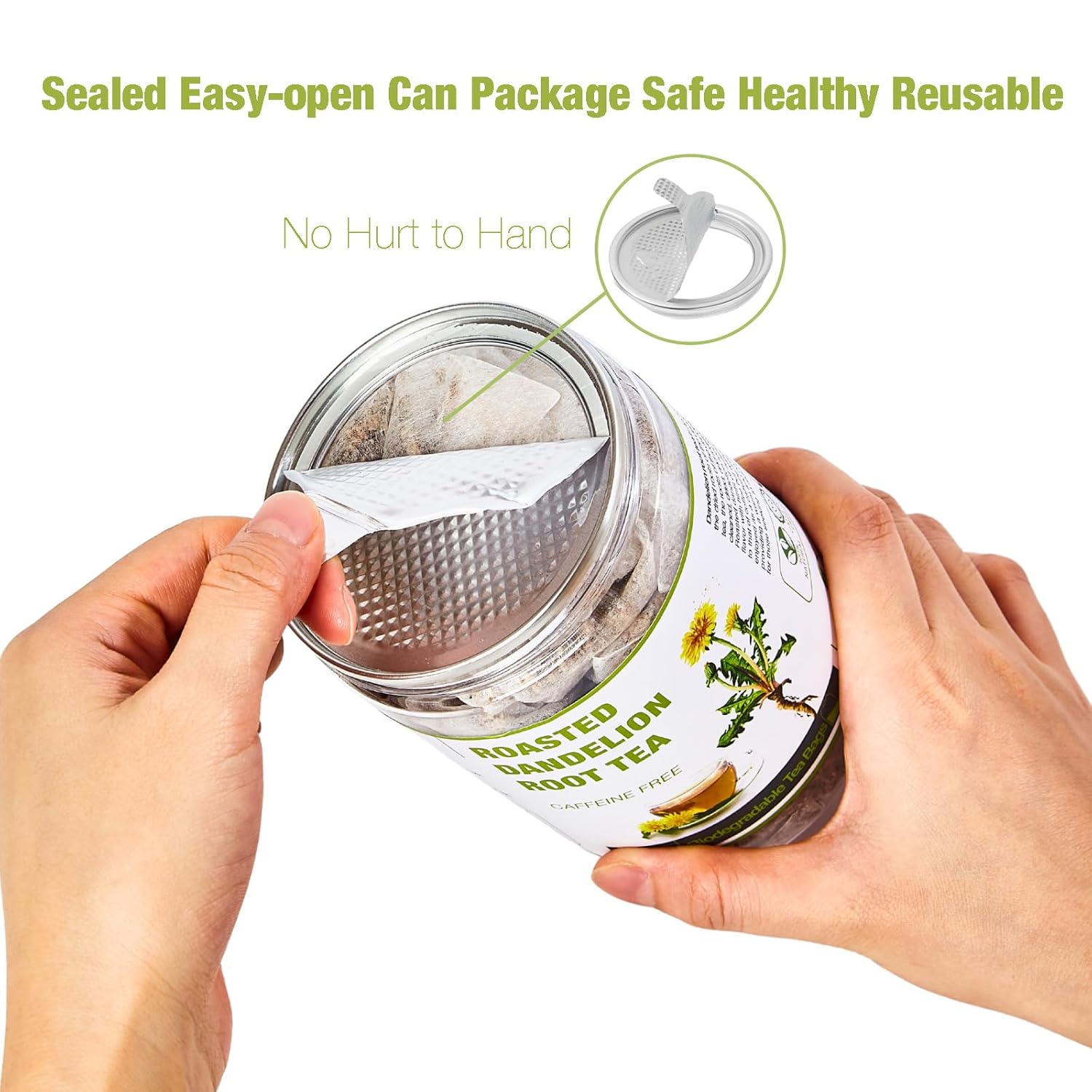 • [ Sealed Easy-Open Can & Biodegradable Tea Bags ] : Our dandelion root tea organic are made of natural corn fiber, which is eco-friendly. They contain no strings, wrapping, staples, adhesive, bleach, or dyes - 100% safe. Each can contains 50 tea bags sealed for freshness, ensuring a delicious cup of herbal tea anytime. Just steep a bag in hot water and savor the smooth, comforting taste.