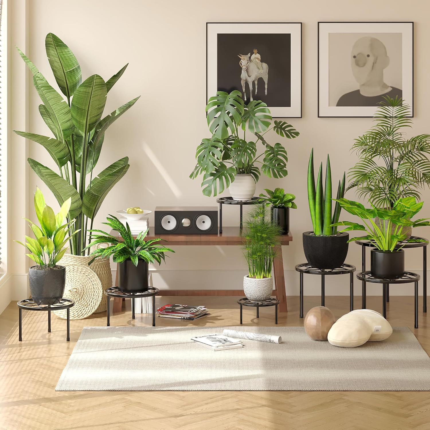 • Stylish Home Decor: Elevate your indoor or outdoor space such as home, balcony, garden, living room with our 5 pack metal plant stands. These small plant holder indoor showcases your plants beautifully while helping them soak in more sunlight.