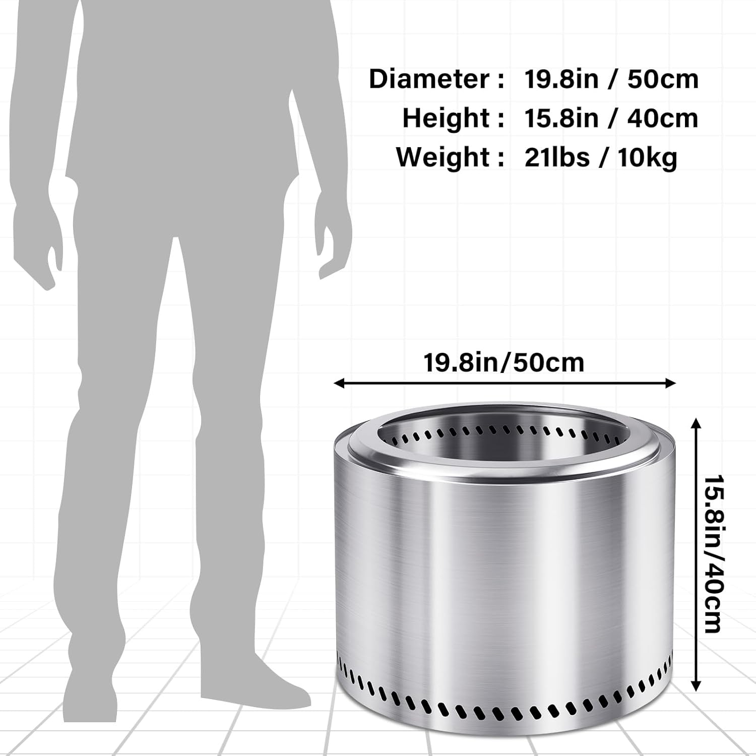 HGD 20 Inch Smokeless Patio Fire Pit, Outdoor Wood Burning Stove, Stainless Steel Firepit for Backyard, Patio, Garden, Picnic