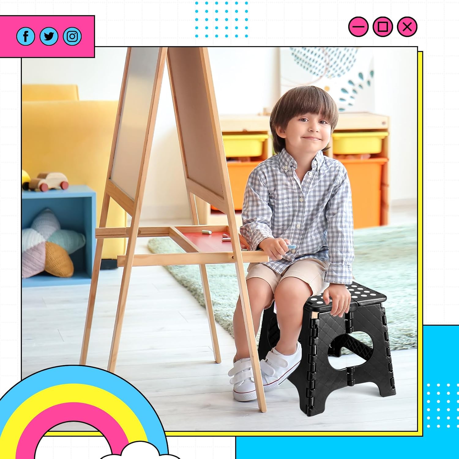 • Anti Slip : Rubber grips on the surface and anti-slip rubber feet on each foot create maximum grip, has amazing support and comfort. Unique grip-dot textured surface makes the folding step stool safe for everyone, including . These safety features make the step stool great for multipurpose uses i.e. kitchen, bathroom, dining room, office, garden, camping, fishing, and more