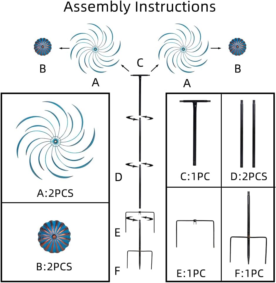 • Easy to Assemble:This wind sculptures is easy to assemble with the instructions and no additional tools.Note please install the pole then install the windmill blades ,which is easier to assemble
