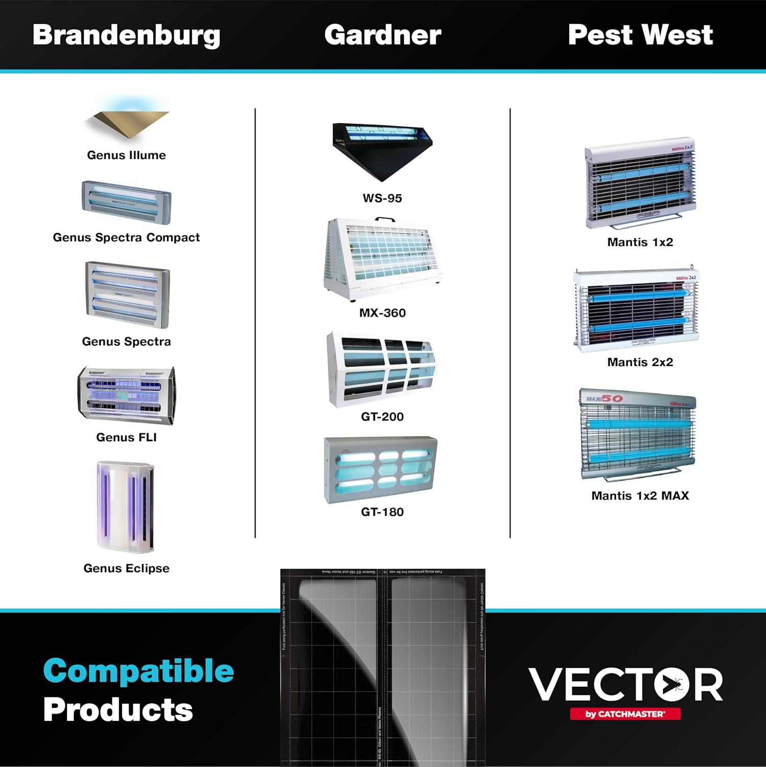 • GLUE BOARD REFILLS FOR UV TRAP: This set includes 12 replacement glue boards with perforations to create 24 glue boards compatible with Vector Fly Light Traps, including the Vector Classic, Vector Plasma Grill, Vector Plasma Screened, Vector Plasma One, Vector 15, Vector 30, and Vector Optima. The Vector Light Traps are sold separately.