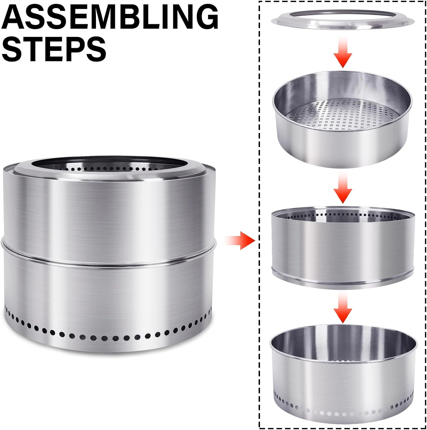 • Low Smoke Firepit:The smokeless firepit outdoor of double wall design with vent holes creates a burst of hot air over fire reducing the smoke and burning more completely, without the post-fire smell in your hair and clothes