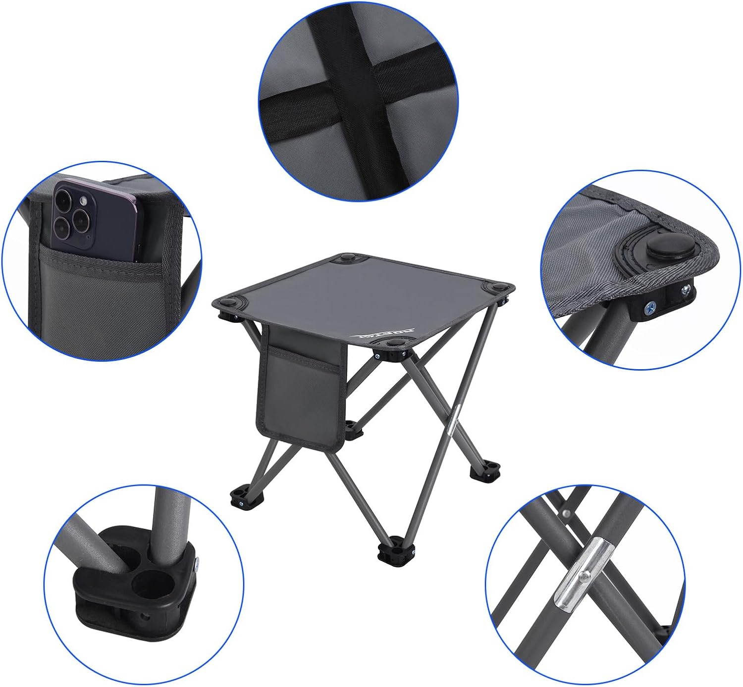 • Folding Stool Size:Portable Camping Stool Unfold Size: 13"L x 13"W x 13"H; Folding Size:4.7"L*16.5H".
