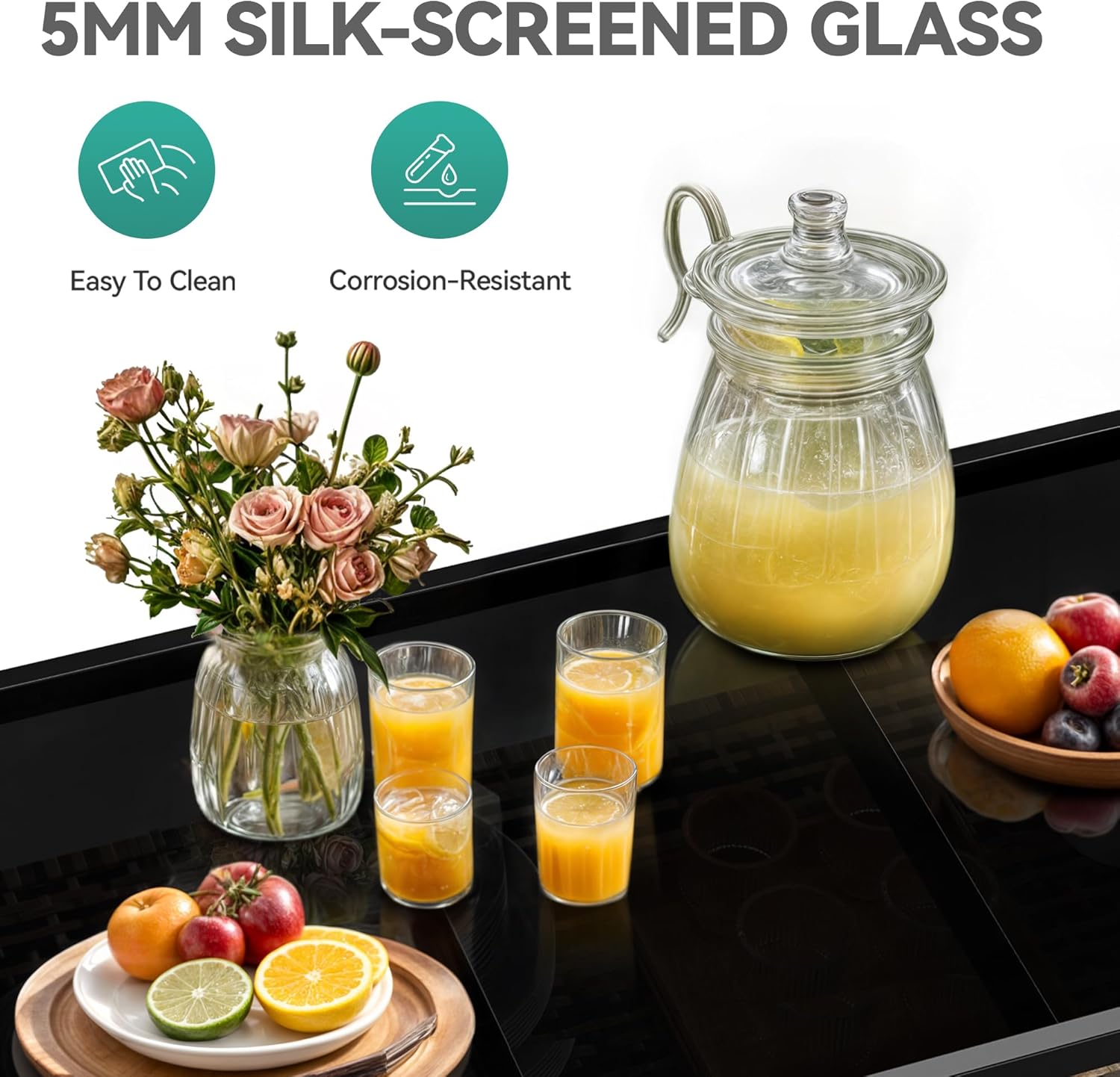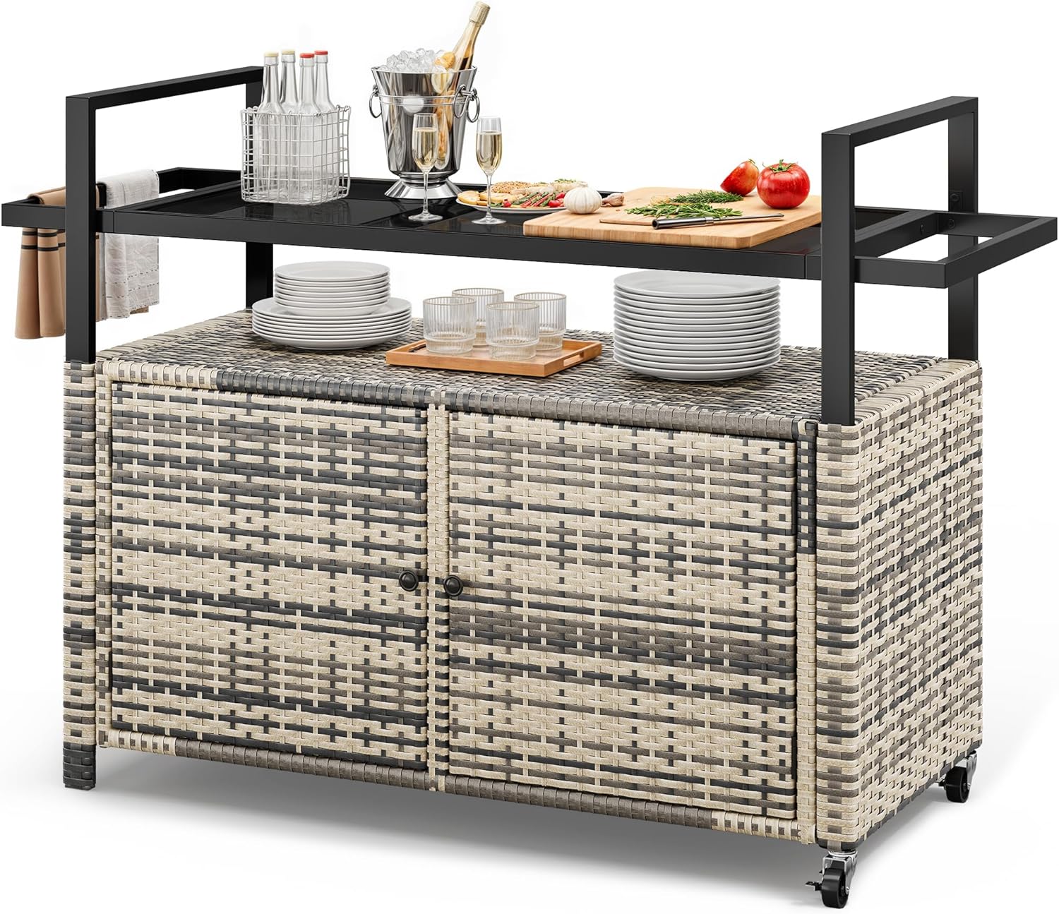 • Sleek glass tabletop: The glass surface of the outdoor buffet cabinet is easy to maintain and brings a modern touch to the cart's aesthetic; Sleek appearance elevates your outdoor gathering experience