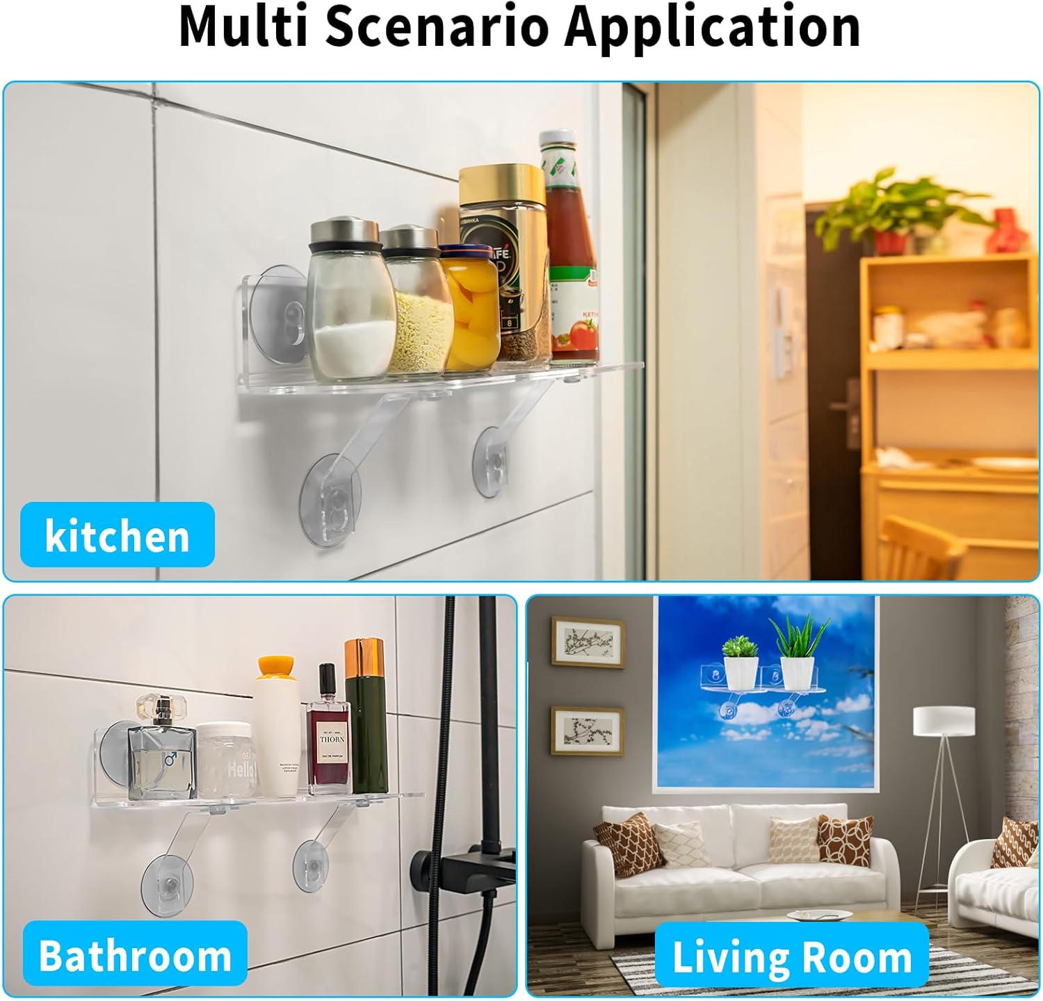 • EASY TO ASSEMBLE : After cleaning the surface with alcohol or a clean towel, the suction cup shelf can firmly adhere to glass, mirrors, and smooth tiles. It's a great suction cup shelf saving wall organizer
