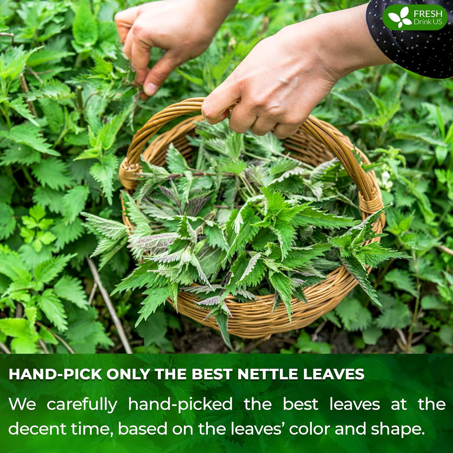 FreshDrinkUS, Premium 135 Nettle Leaf Tea Bags, 100% Natural & Pure, Stinging Nettle Leaf Tea, Nettle Leaf Tea, Burn Nettle, Stinging Nettle, Nettle Tea, Stinger Tea, No Sugar/ Caffeine & Gluten, Vegan
