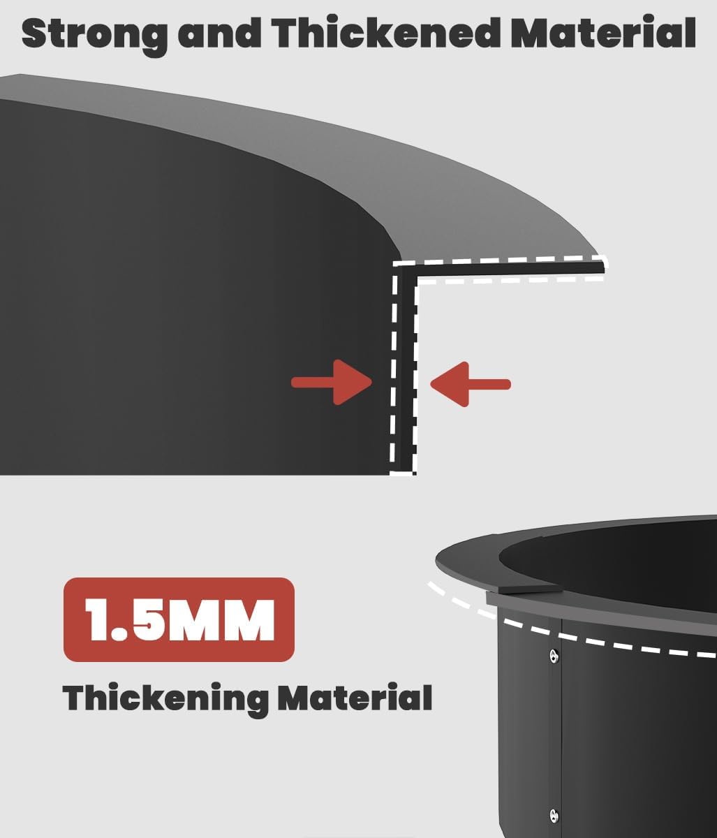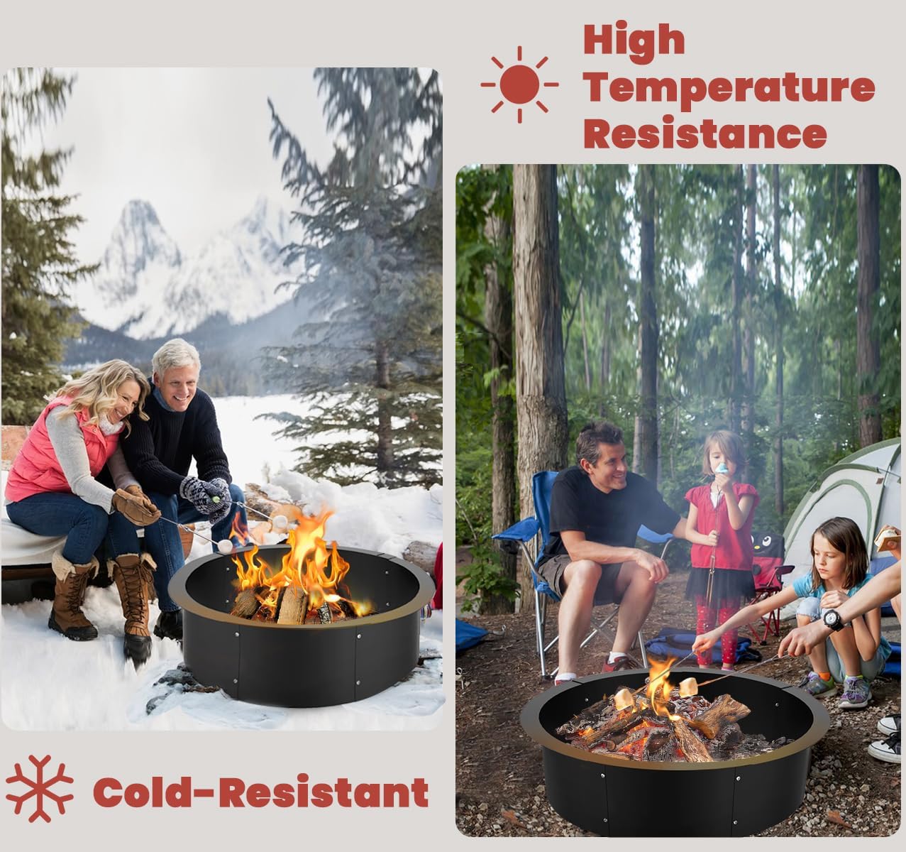 • Thickened & Rugged: The matte black high-temperature powder coating on the surface of the fire ring for outside fire pit, the iron sheet thickened to 1.5mm, increased the durability of the steel fire pit ring, the coating is not easy to peel, more durable, can be used repeatedly.