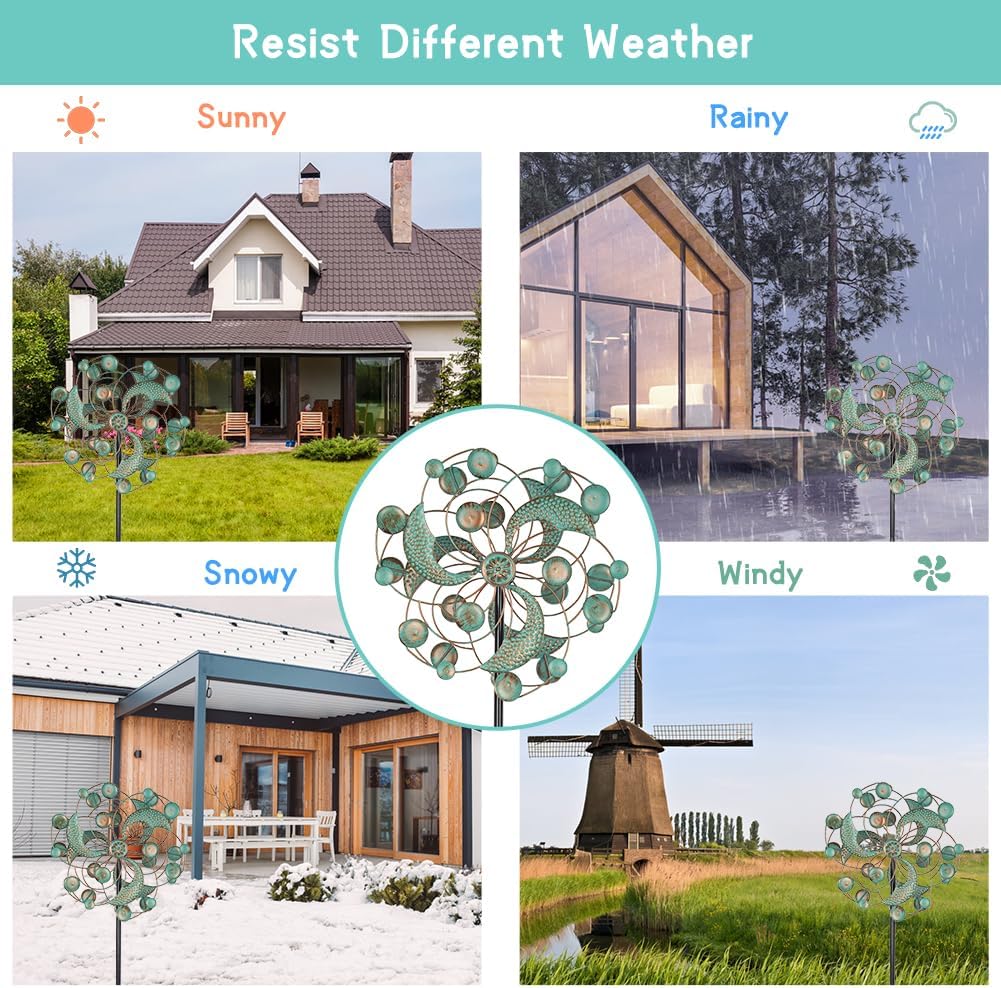 • Design: This Wind Spinner features two intricately designed spinning blades, each crafted with precision and detail to emulate natural beauty and fluidity, this garden spinner can elevate your lawn, patio, or yard decor, offers a dynamic and interactive experience, thereby adding depth and movement to your outdoor space.