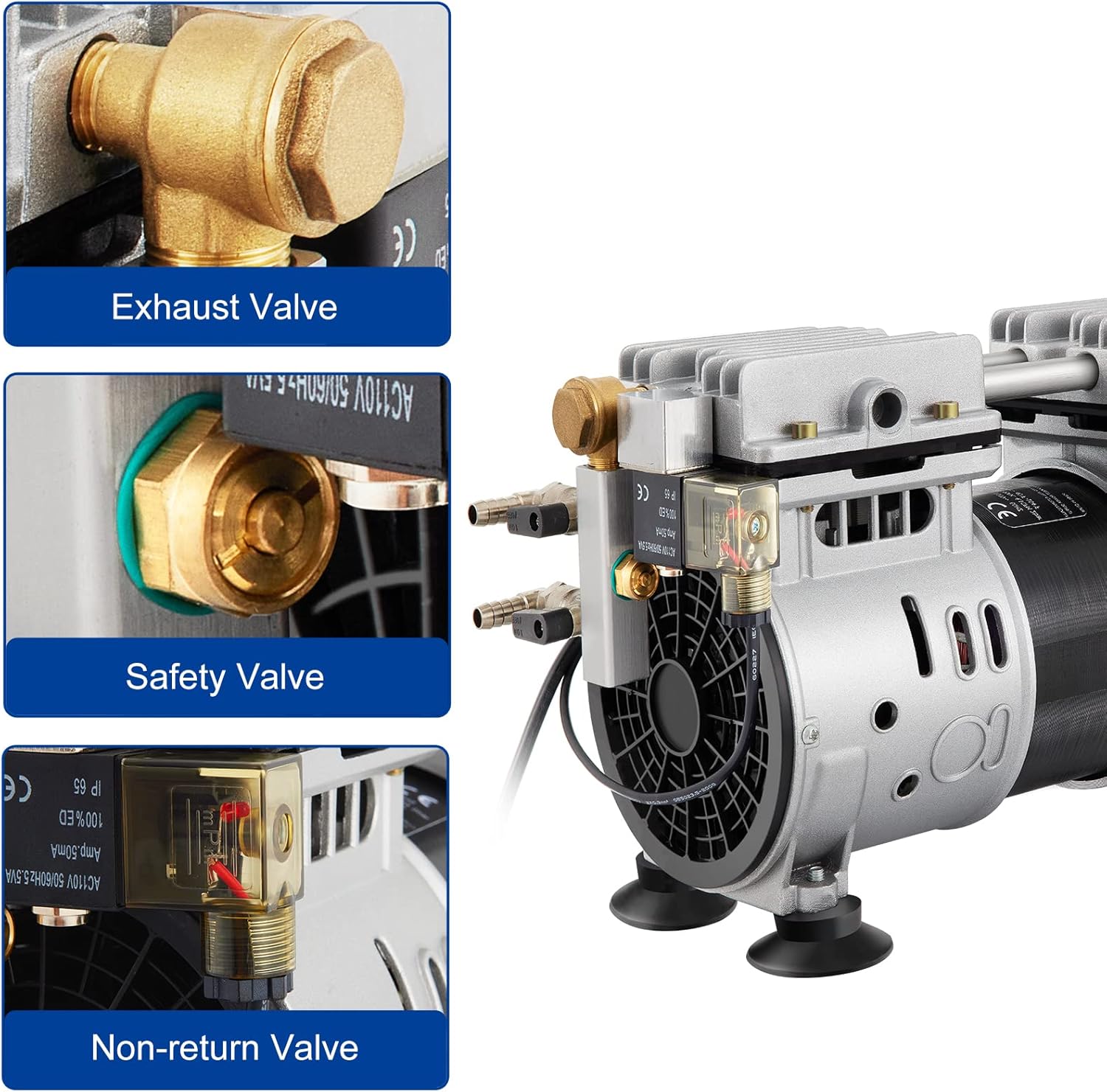• 【High Performance】Oil-free & rocking piston air compressor would generate heat normally on working state, built-in thermal sensor with the function of 275℉ over heat protection; The machine is made of corrosion-resistant aluminum alloy, which has good heat dissipation effect