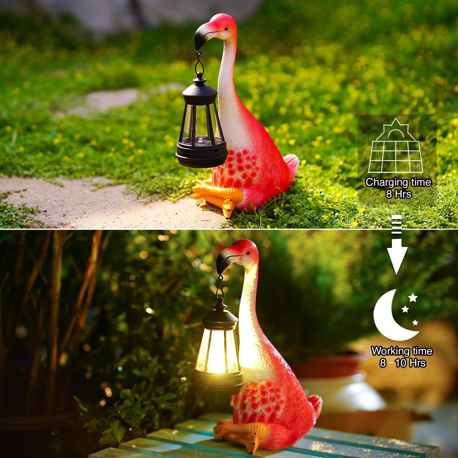 • 【Great Gift Ideas】: Surprise your loved ones, especially moms, with this unique and charming flamingo statue that doubles as a solar lantern