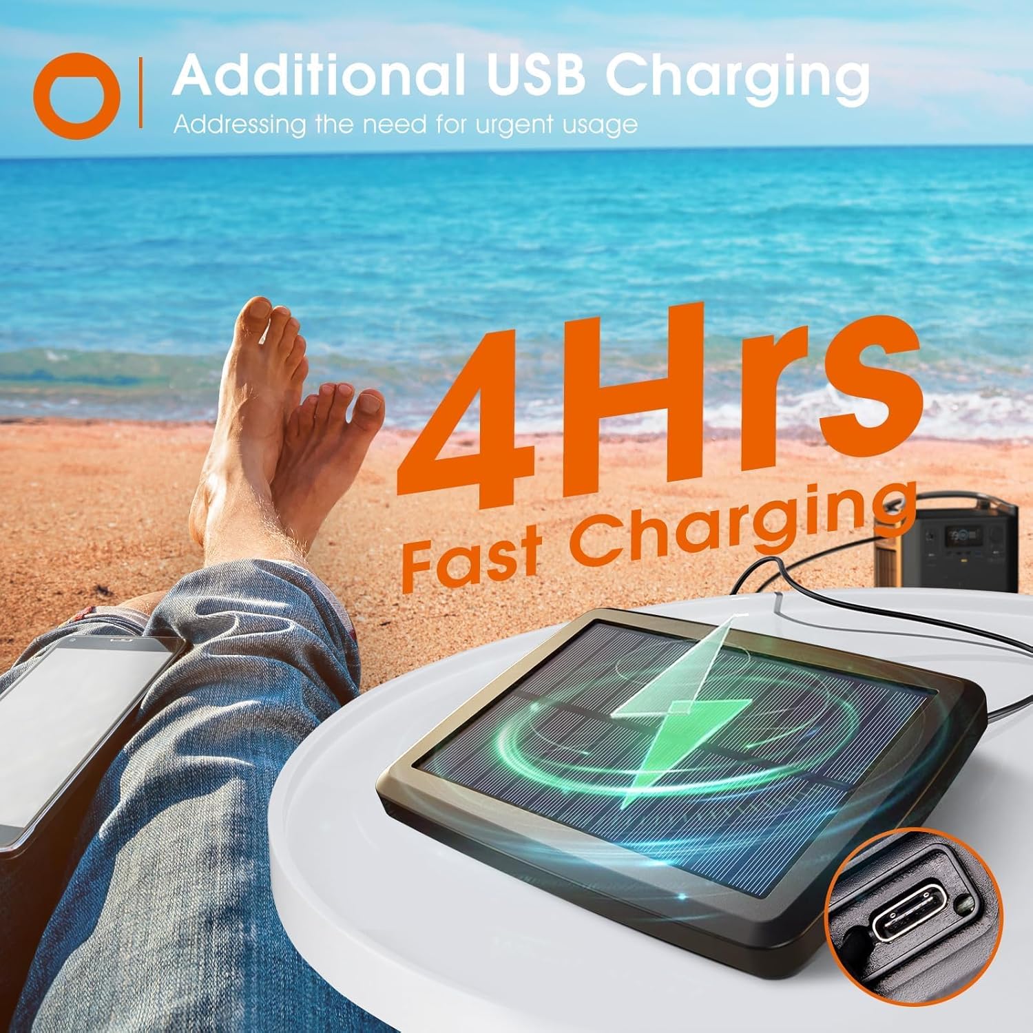 • Some TIPS: Please use the USB port for charging when you receive the item for the first time to make sure the power is sufficient. When encountering continuous cloudy and rainy days, you can remove the solar panel separately for USB port charging to avoid insufficient power