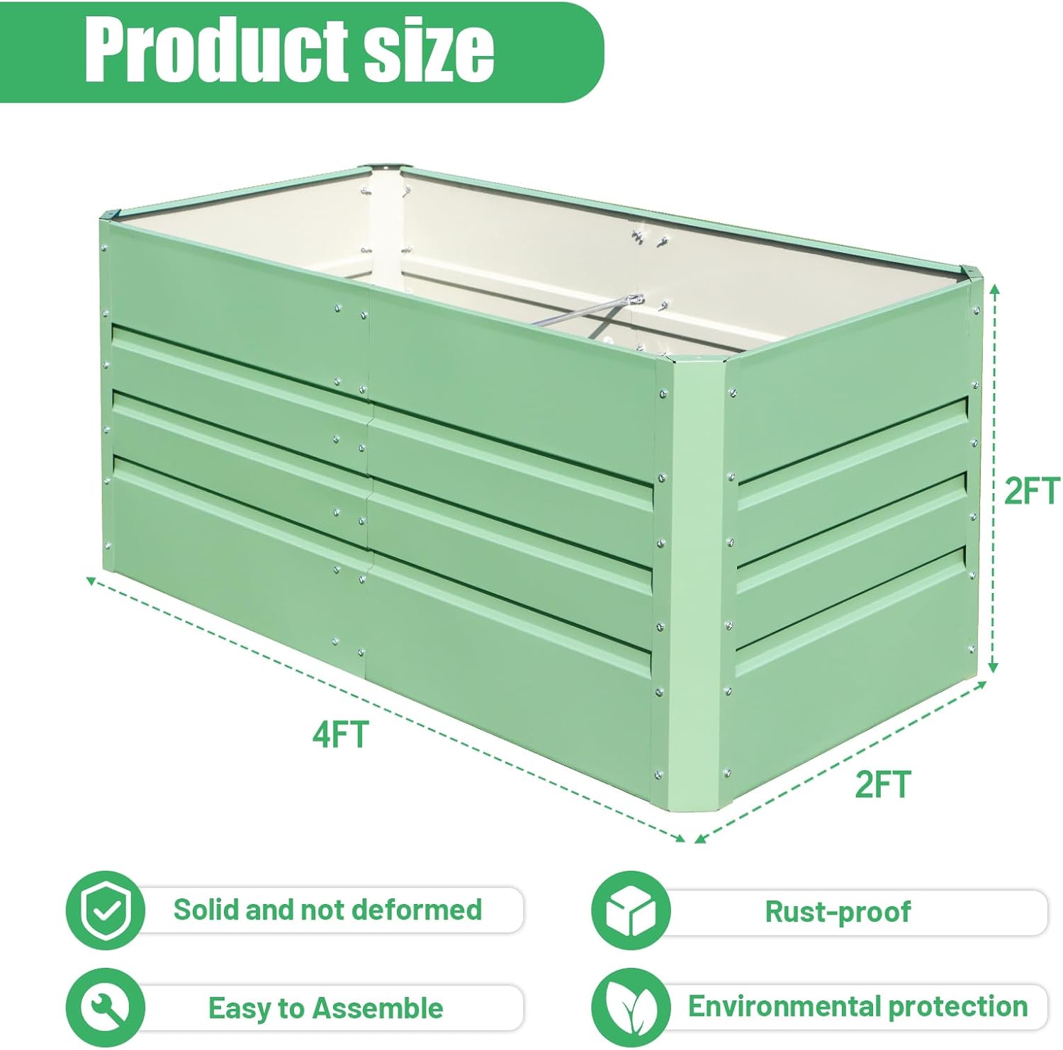SnugNiture 2 Pcs 4x2x2FT Raised Garden Bed Galvanized Planter Garden Boxes Outdoor, Deep Root Planter Raised Bed for Vegetables Flowers Herbs,Green