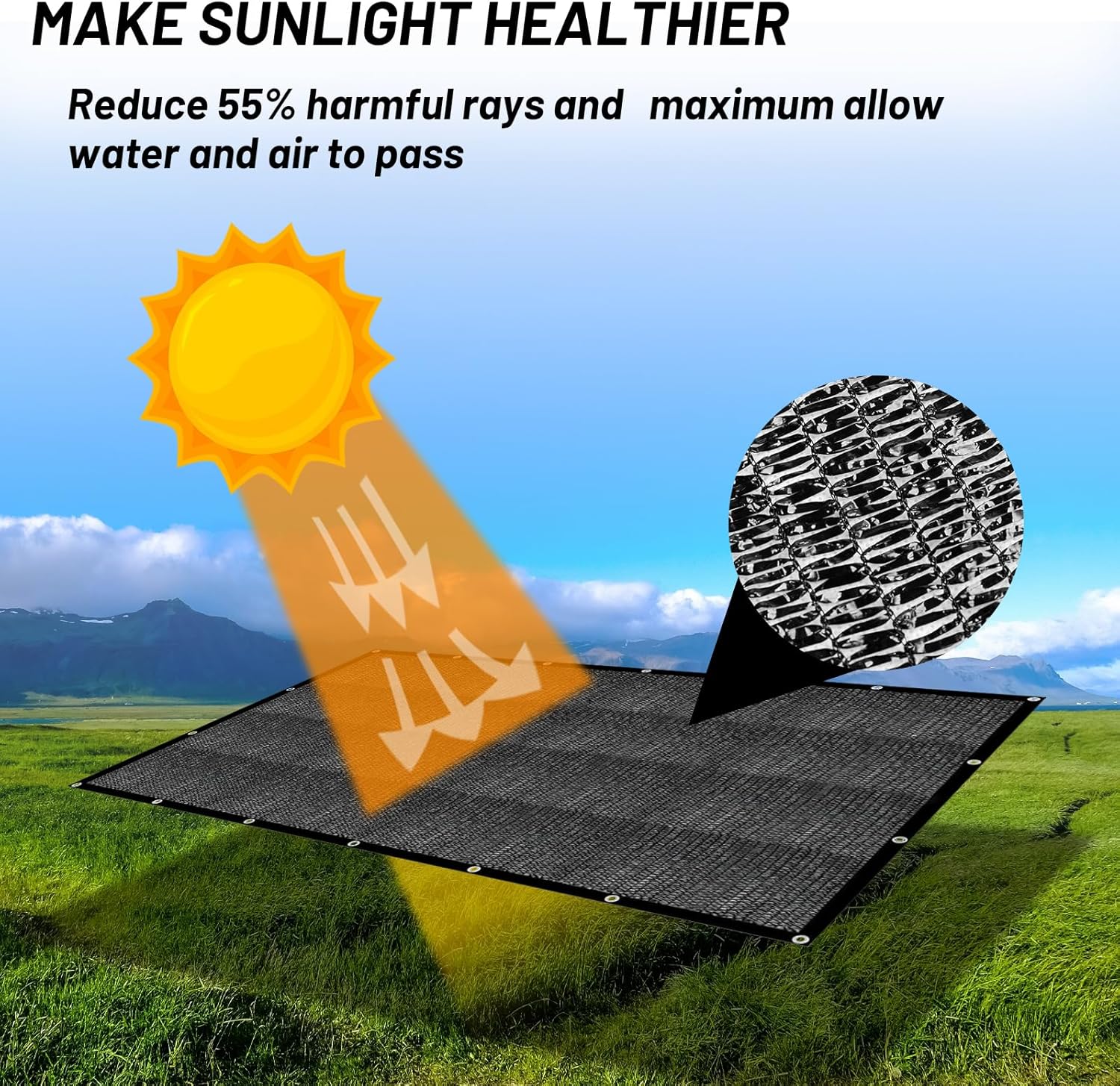 • 【55% Shading Rate】Made of 100% New High Density Polyethylene (HDPE) fabric material, has a shading rate up to 55% can avoiding direct sunlight while allowing free air circulation.