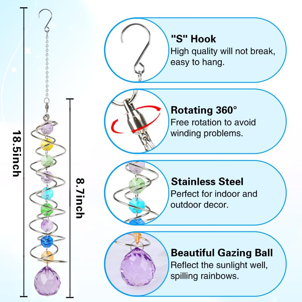 • Crystal Suncatcher: The spiral with crystal is a special rainbow maker, crystal prisms are polished to reflect sunlight well, suitable as suncatcher for window, dancing in the wind and making lots of cute little rainbows.