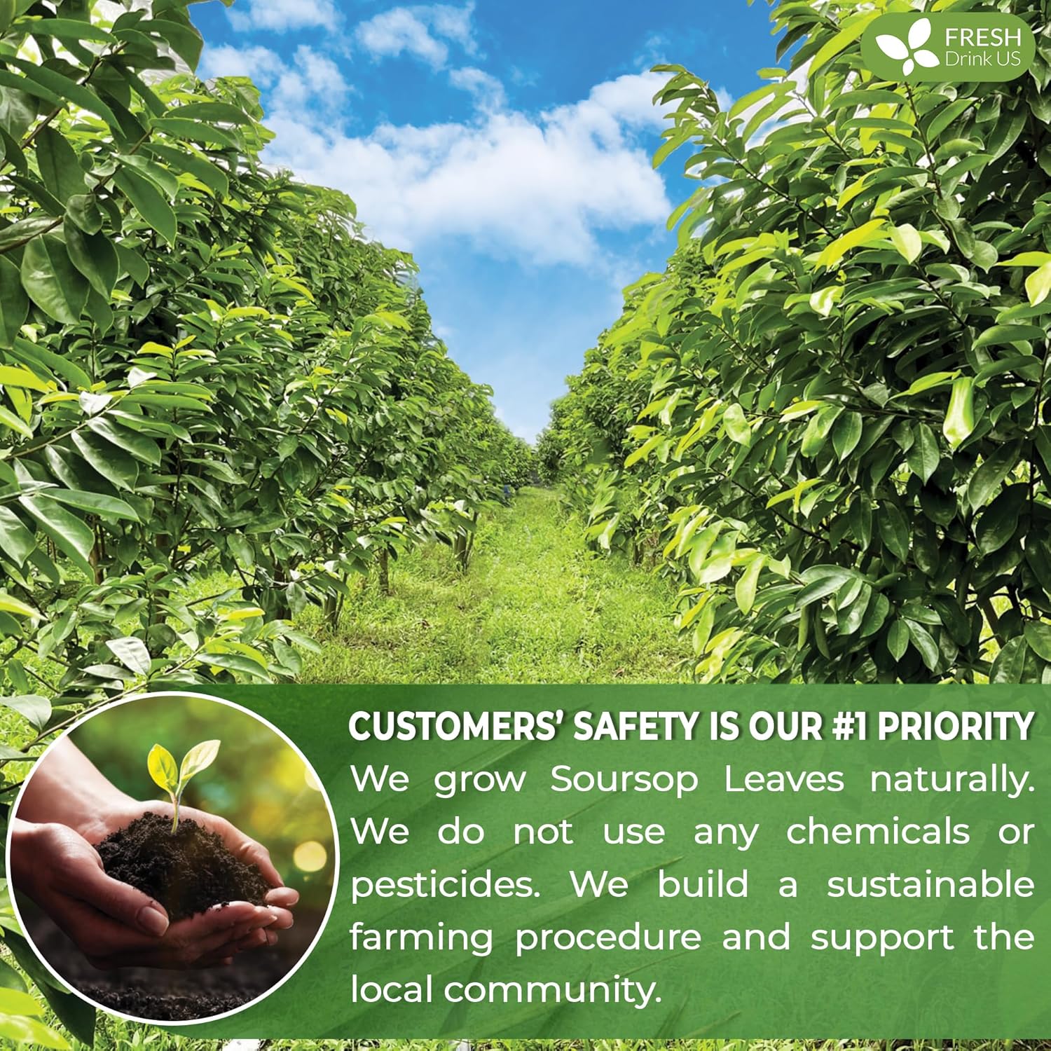 • ☘️ HAND-MADE PRODUCING PROCESSES, NO ADDITIVES: Our Soursop leaves were processed in a hygienic environment, and then packed in a Re-sealable bag to make a long self-life product, ensure the safety of customers and quality of products. Sugar-Free, Caffeine Free, Gluten Free, Vegan, No Artificial Flavors, No Colors Added.