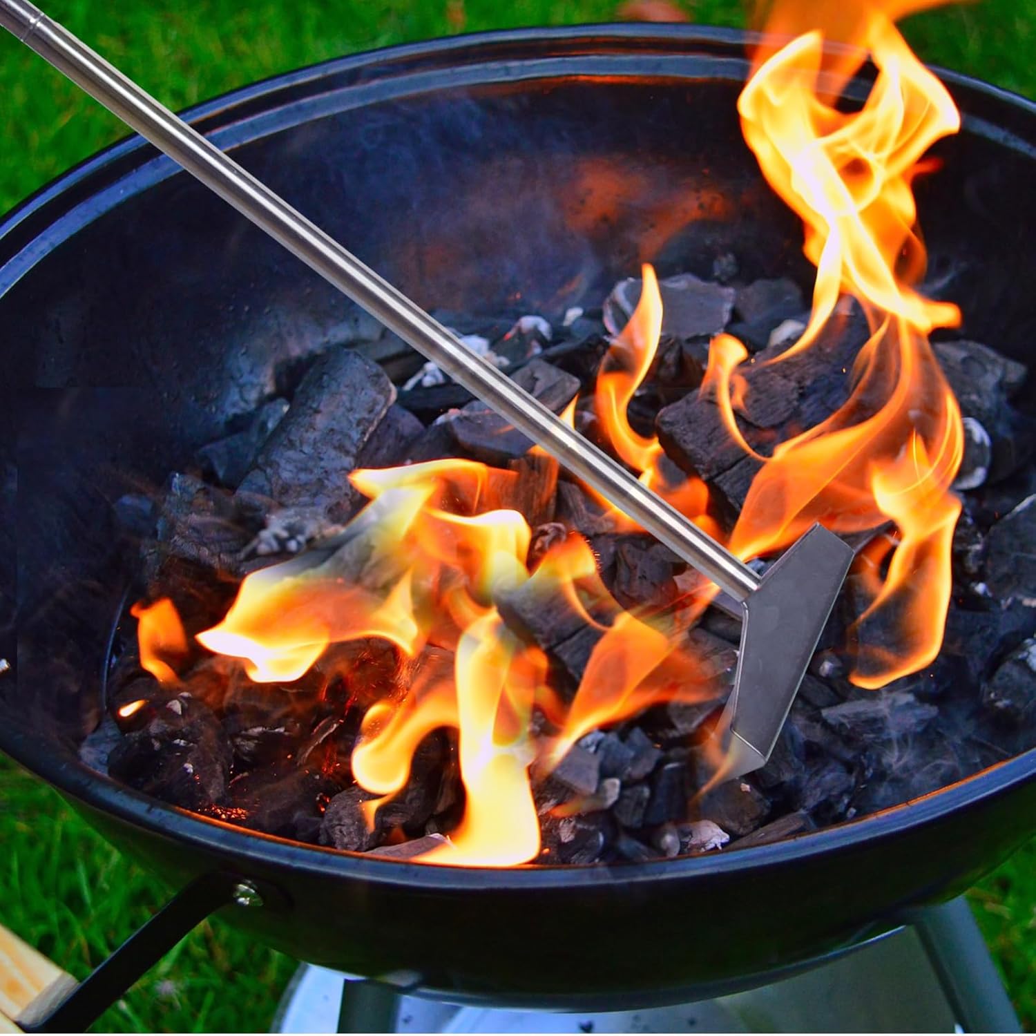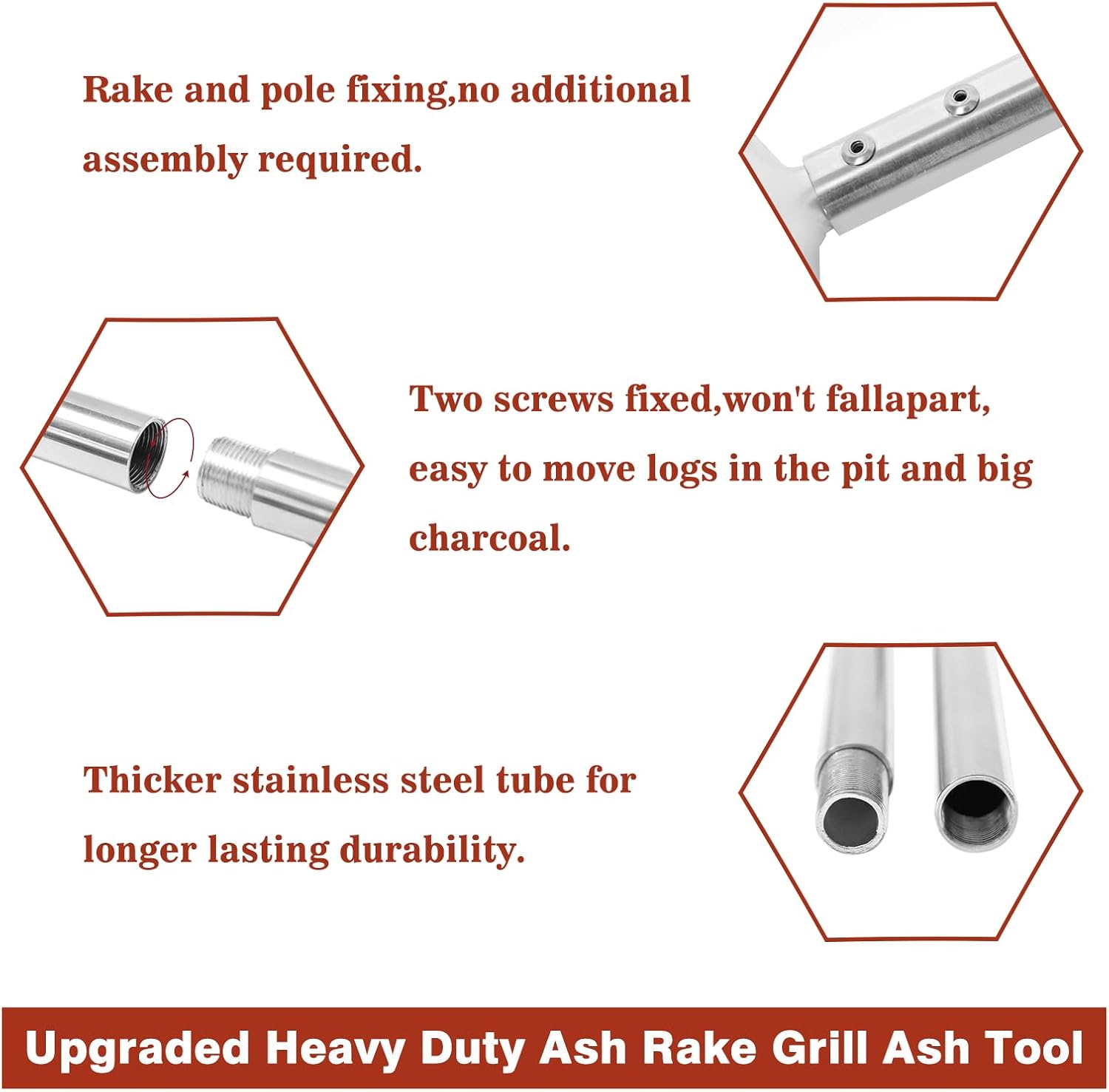 • Heavy Duty Charcoal Ash Tool - Stainless steel charcoal ash rake that won't twist at high temperatures.The charcoal ash rake head and pole are directly connected for greater durability and sturdiness for extended use.