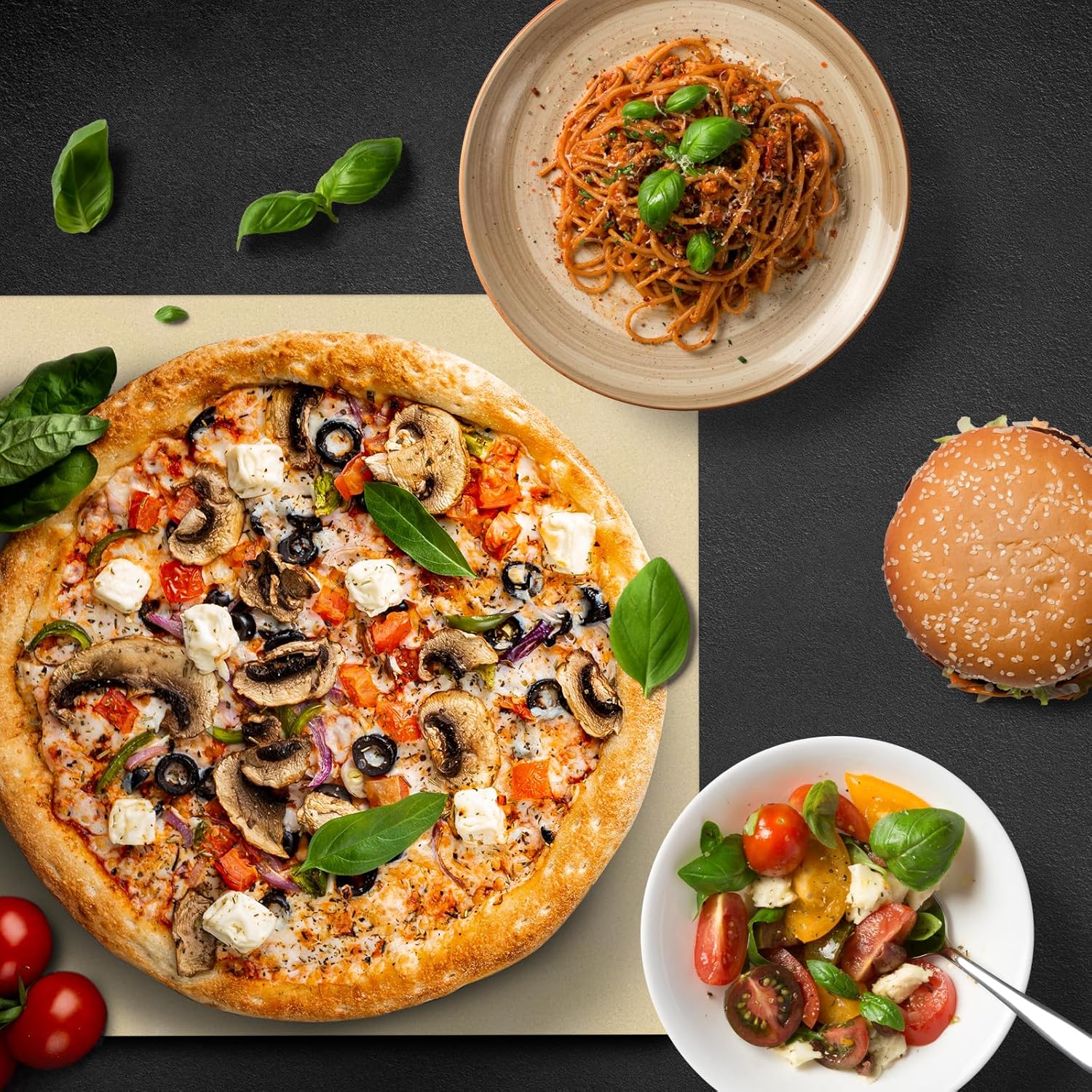 • Multifunctional Pizza Stone for Grill: Pizza Baking Stones can be used directly on Ovens and Grills. Pizza Baking Stone is not only can make professional pizza, but also a good choice for baking bread and cookies. Allowing you to enjoy high-quality pizza from the pizza shop without leaving your home. After baking, wait for the Pizza Baking Stone to cool down and rinse with warm water. After washing, wiping dry can extend its service life