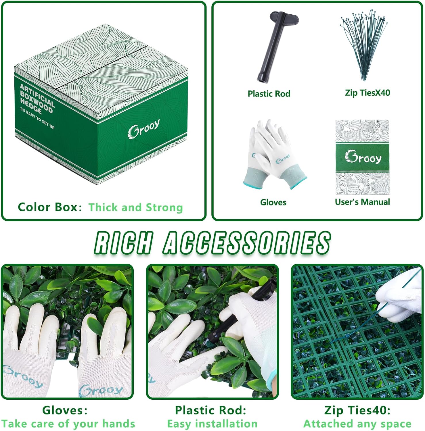 • 🌿【Premium Greenery, Built to Last】Grooy Artificial Boxwood Hedge Panels are made tough, using the latest in High-Density Polyethylene (HDPE). No matter the blazing sun or stormy weather, they'll stay vibrant and lifelike, adding a touch of nature that lasts.