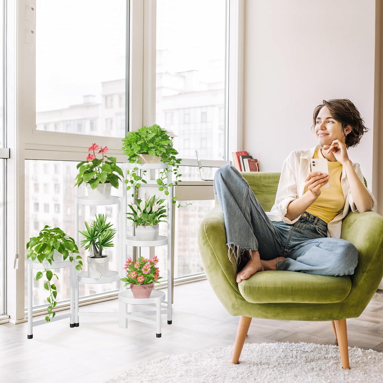 • 7.9-Inch Wide Trays with Rim: This tall plant stand features 7.9-inch round trays, suitable for pots up to 7.5 inches wide. Each tray is designed with raised edges that guard against spills and tipping, keeping your plants safe and steady