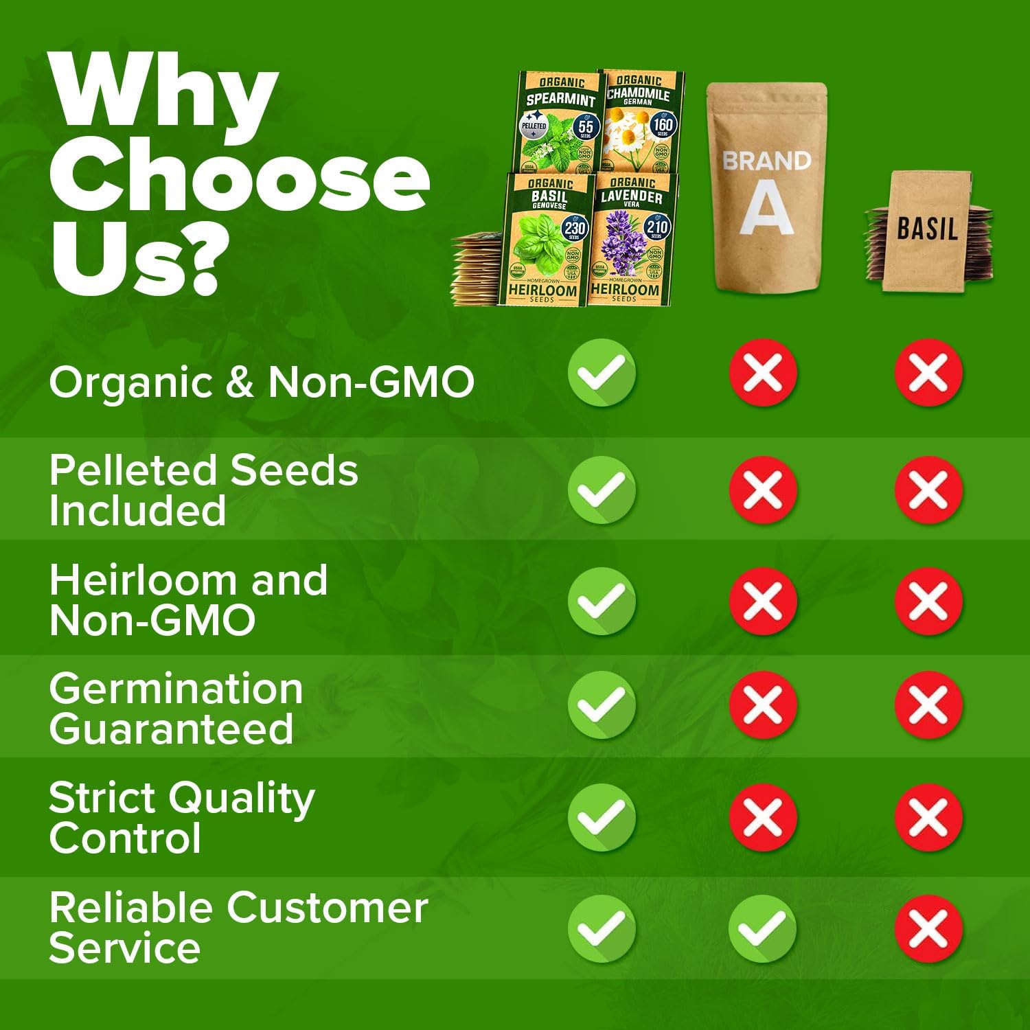 • PERFECT FOR COOKING, TEAS, AND NATURAL REMEDIES: From fresh basil for your caprese salad to soothing chamomile for bedtime tea, this organic herb seed kit supports a wide range of uses. Add flavor to your meals, fragrance to your home, or healing to your daily routine. Popular picks like peppermint, sage, and thyme offer holistic benefits beyond the kitchenβ€”ideal for DIY salves, herbal infusions, and wellness blends.