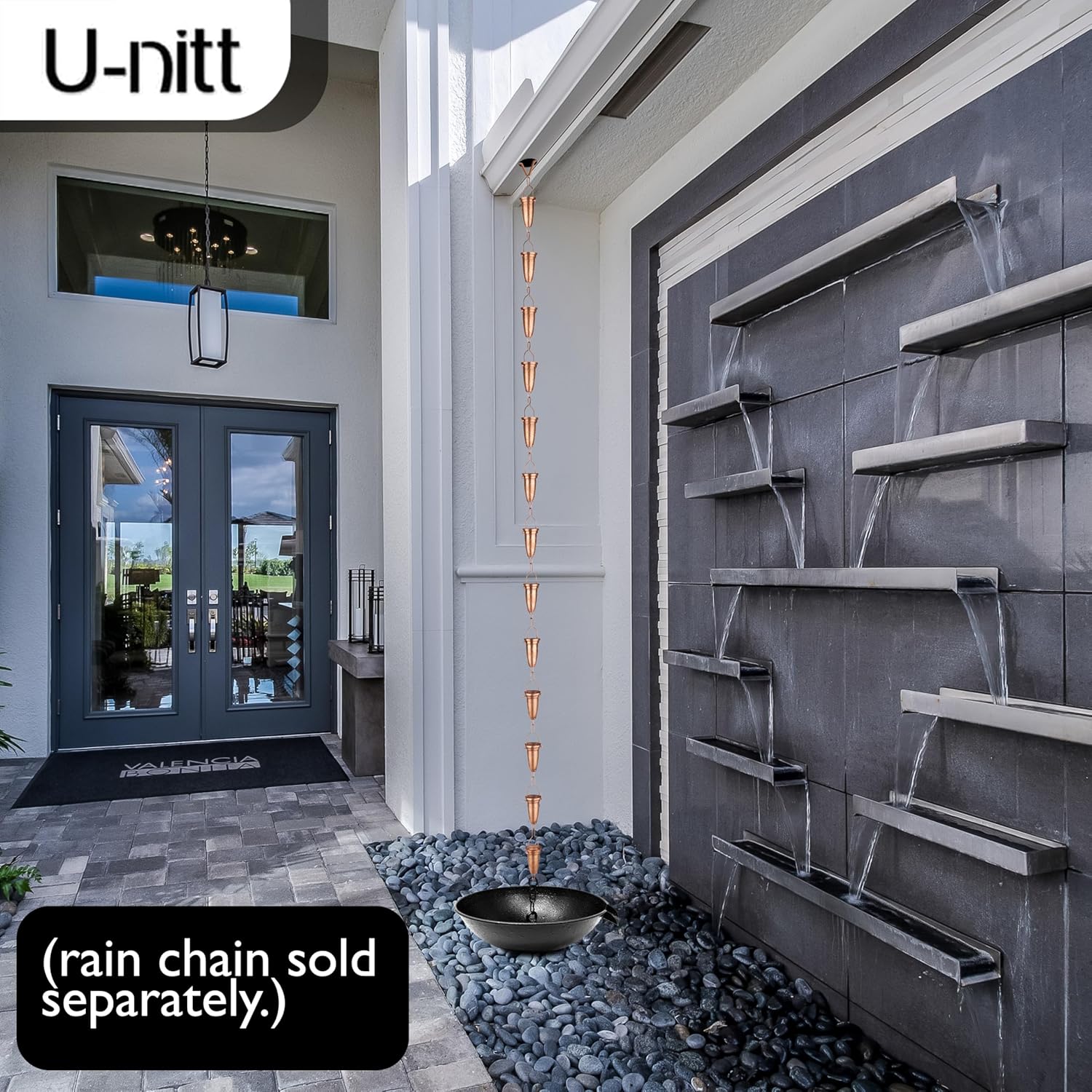 • SHOP WITH CONFIDENCE - Enhance your rainwater management with this U-nitt rain chain anchoring basin, designed for an open system that not only secures your rain chain while collecting rainwater from the roof, but also creates an instant fountain display that transforms your rainy day experience. A stylish alternative in place of a rain barrel, which conceals rain water. Built for stability and beauty, it's the perfect way to complete your rain chain setup!