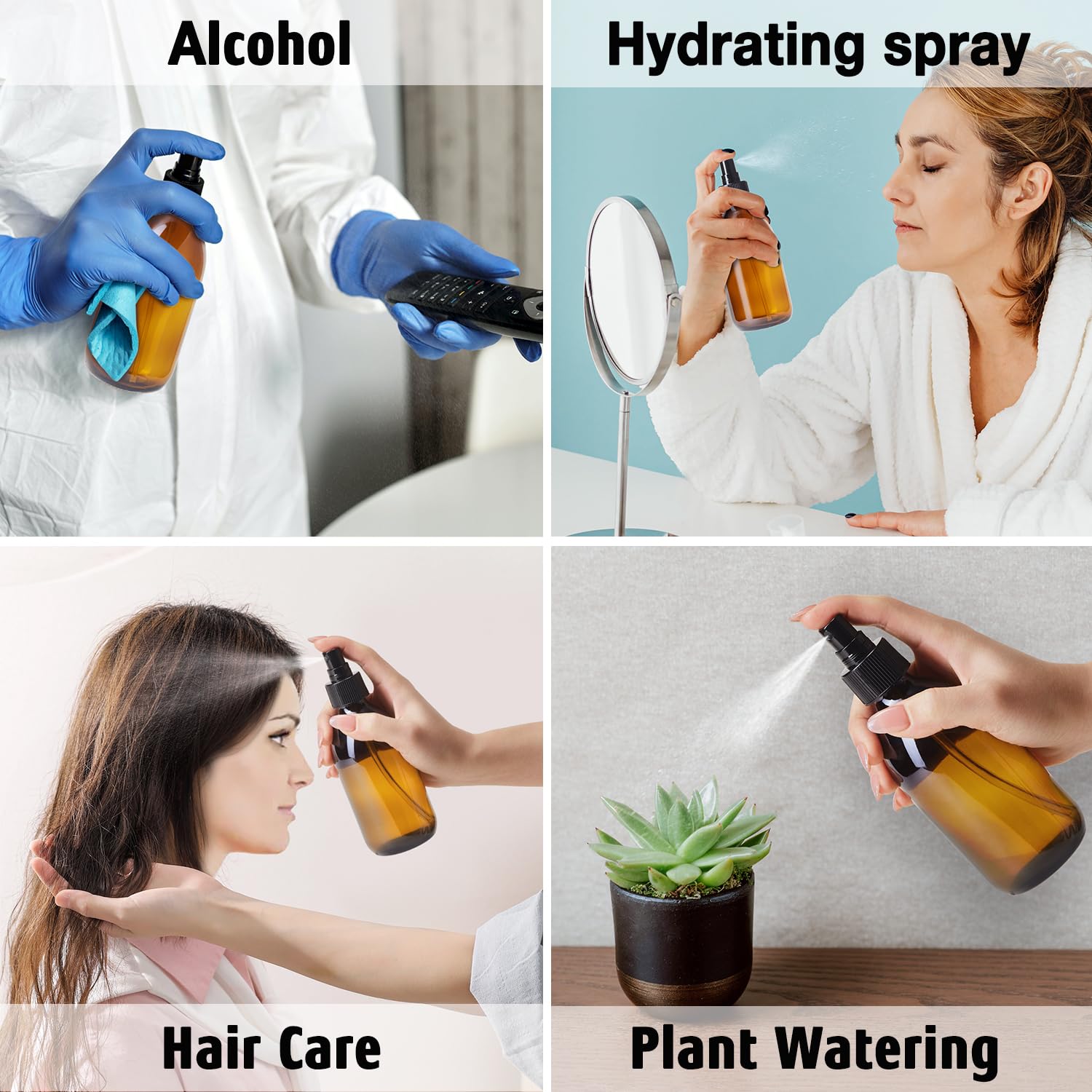 Tecohouse Amber Glass Spray Bottles 8.8 oz, 2 Pack Empty Spray Bottle for Essential Oils, Small Glass Bottles for Cleaning Solutions, Plants, Hair with Durable Nozzle, Labels, Funnel