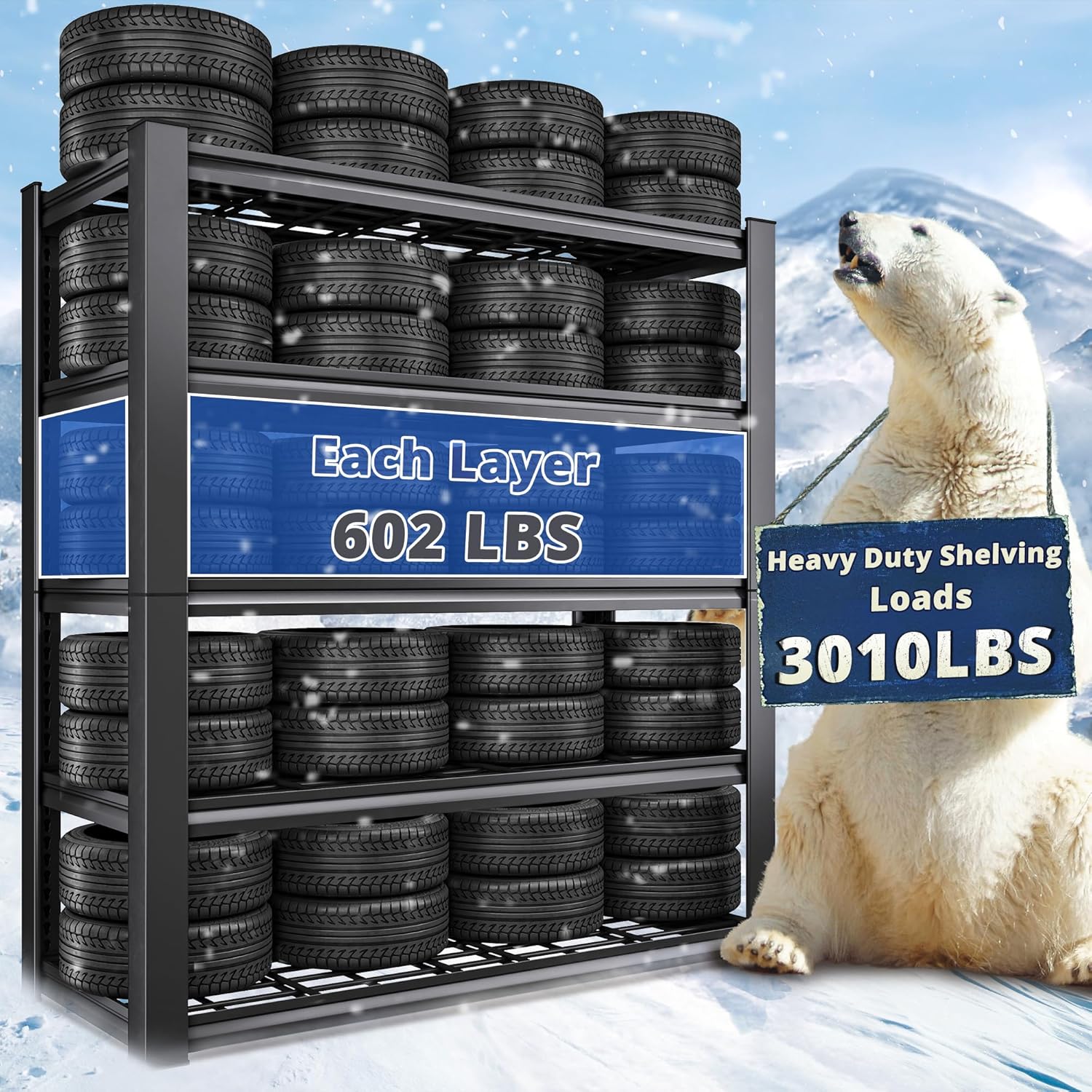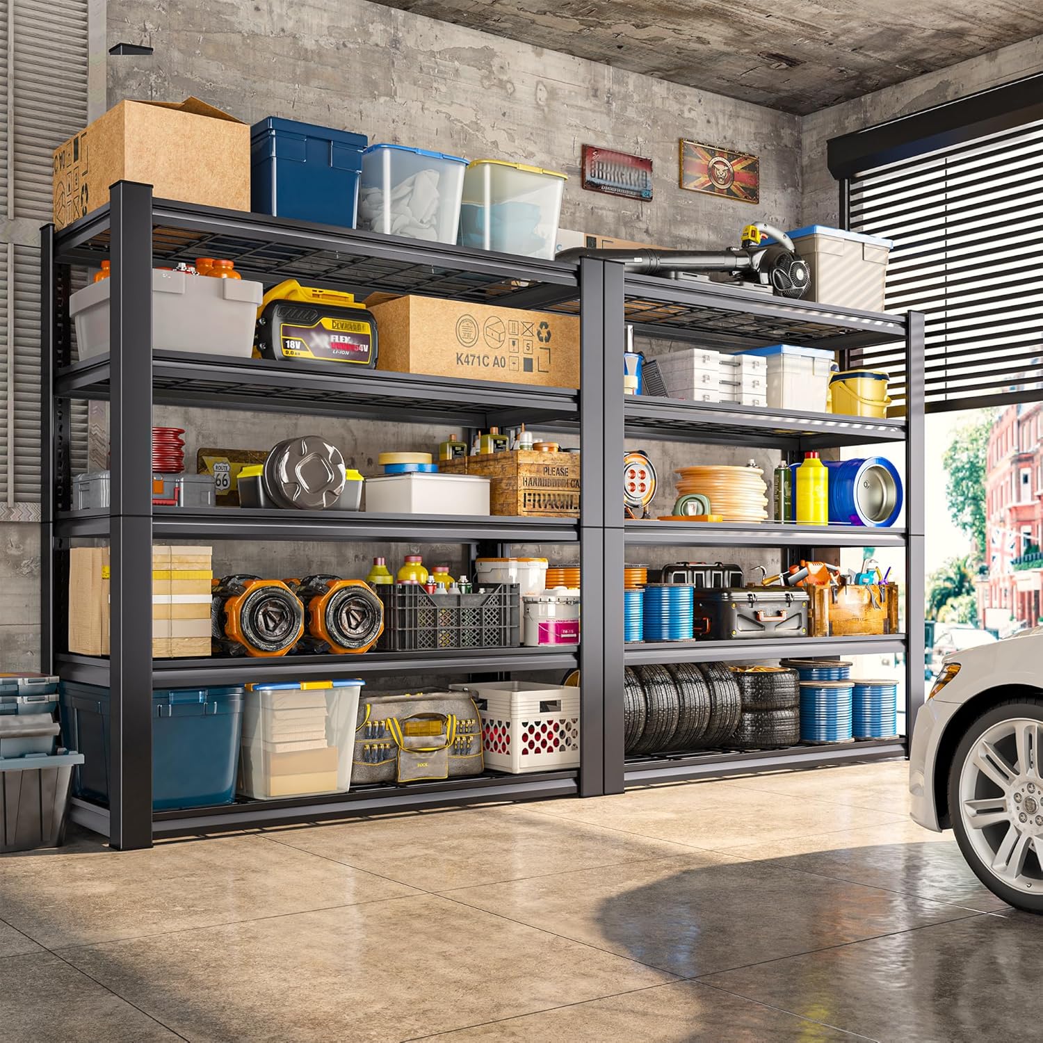 • 【3010LBS Extremely Sturdy】This garage shelving heavy duty has thickened legs. Every solid thickened metal shelf with extra stiffener can hold up to 602 lbs, a total of 3010 lbs bearing capacity gives you good storage experience. No matter how much weight you put on it, the garage storage shelves heavy duty will not wobble or shake