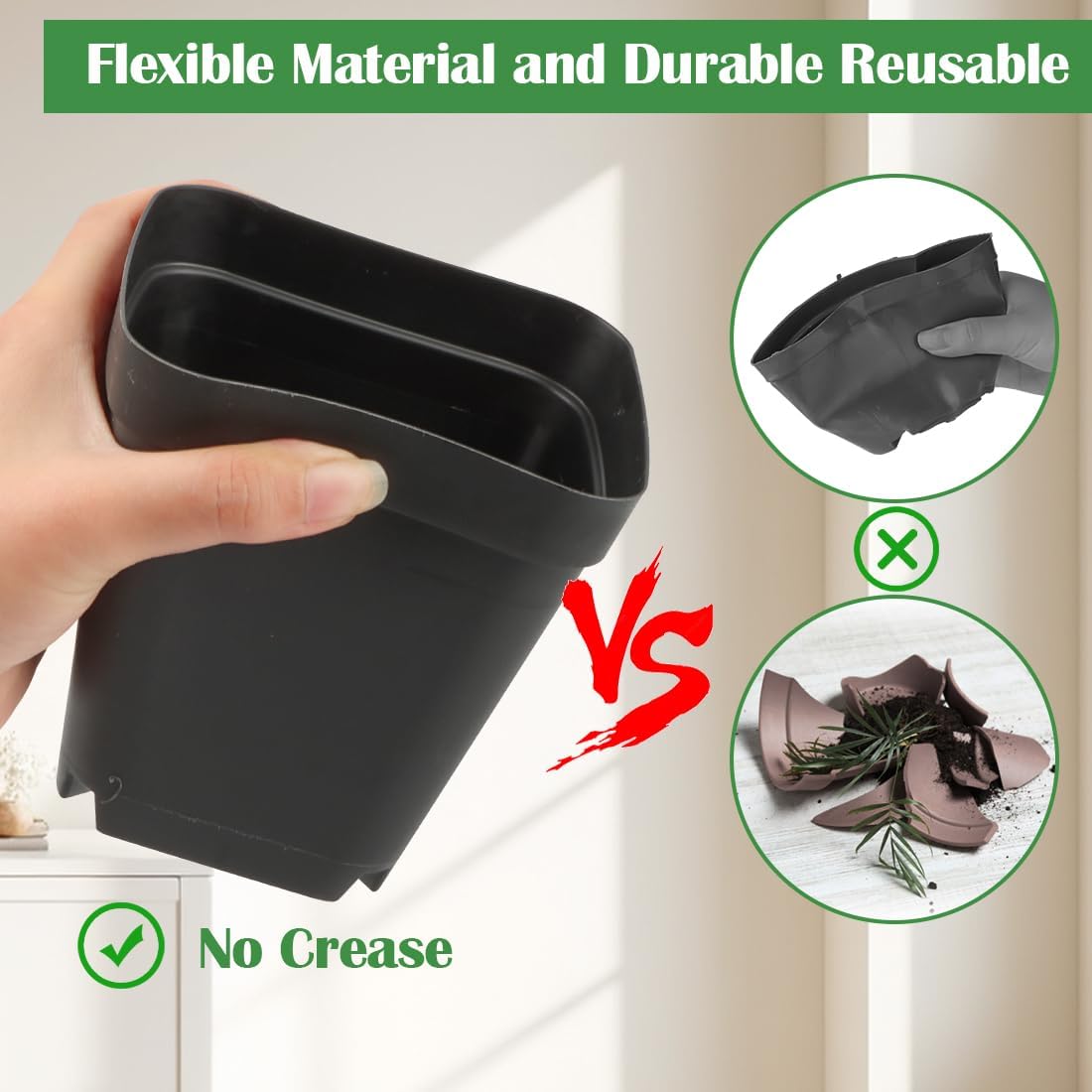• 【High Quality Material】Our 3.15 inch square nursery pots with tray, is made of high quality new material, BPA free, with high toughness, not easily deformed, good thickness and easy to transplant. Added anti-aging factor, long life, reusable. When you're using the square box, don't worry about it falling over.
