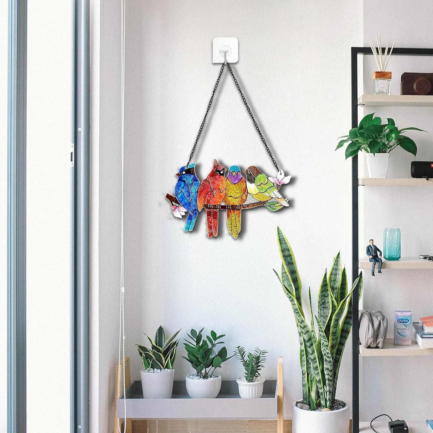 Stained Glass Window Hanging - Birds on A Branch Suncatcher for Window Doors Home Decoration, Valentine's Day Mother's Day Birthday Bird Lover Gifts for Women, Men, and Mom Grandma