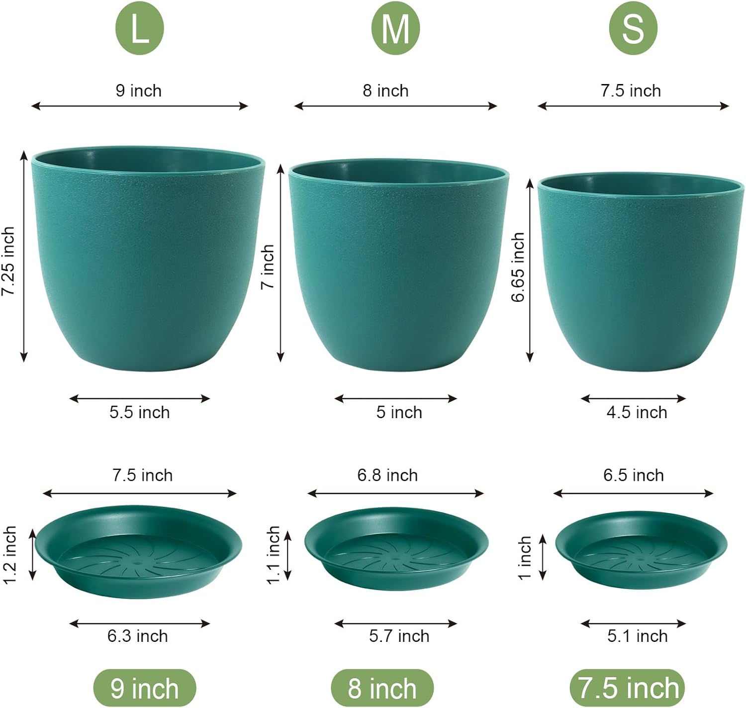• [3 Size Combo] Set of 3 planters in different colors and sizes: Large (9''D7.25'H), Medium (8''D7''H), Small (7.5''D*6.65''H). Perfect for any home or office plant, opening up your living space. Ideal for transplanting medium or large indoor plants.