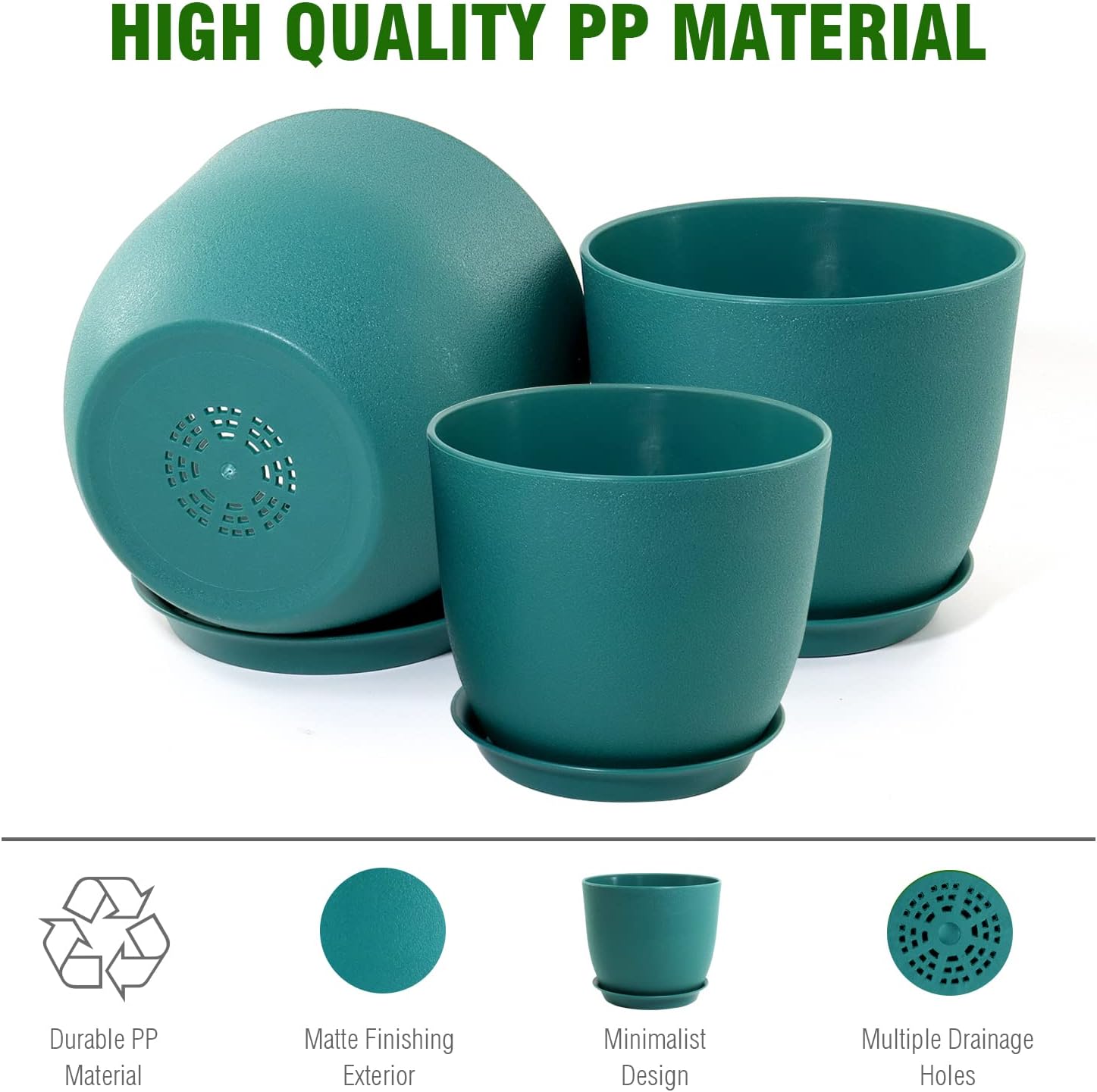 • [Lightweight and Durable] Plastic planters retain moisture for extended periods, making them perfect for those who forget to water often. Made of lightweight, premium plastic, these pots are durable and resistant to breakages. Sturdy, yet light, they provide a rich look and feel. Weather and UV-resistant, ensuring color longevity.