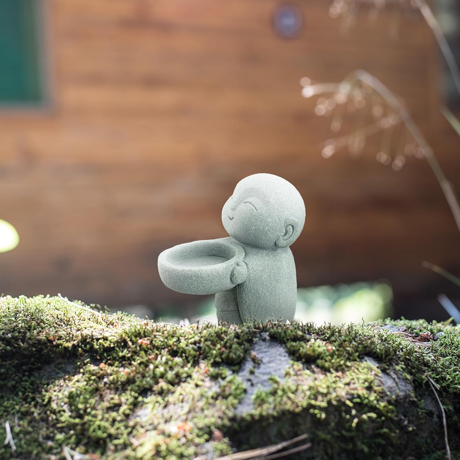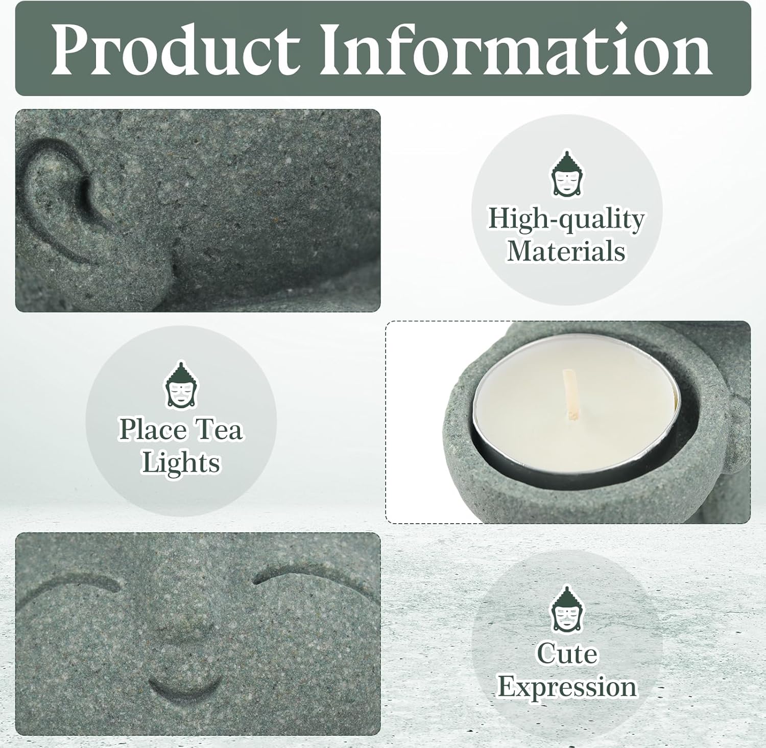 • Appealing Color and Design: the minimalistic gray tone of the baby Buddha tea light holder, coupled with its quaint depiction of a zen monk, enhances its appeal to the viewer; The adorable monk figure further brings calmness and serene ambiance wherever it is placed